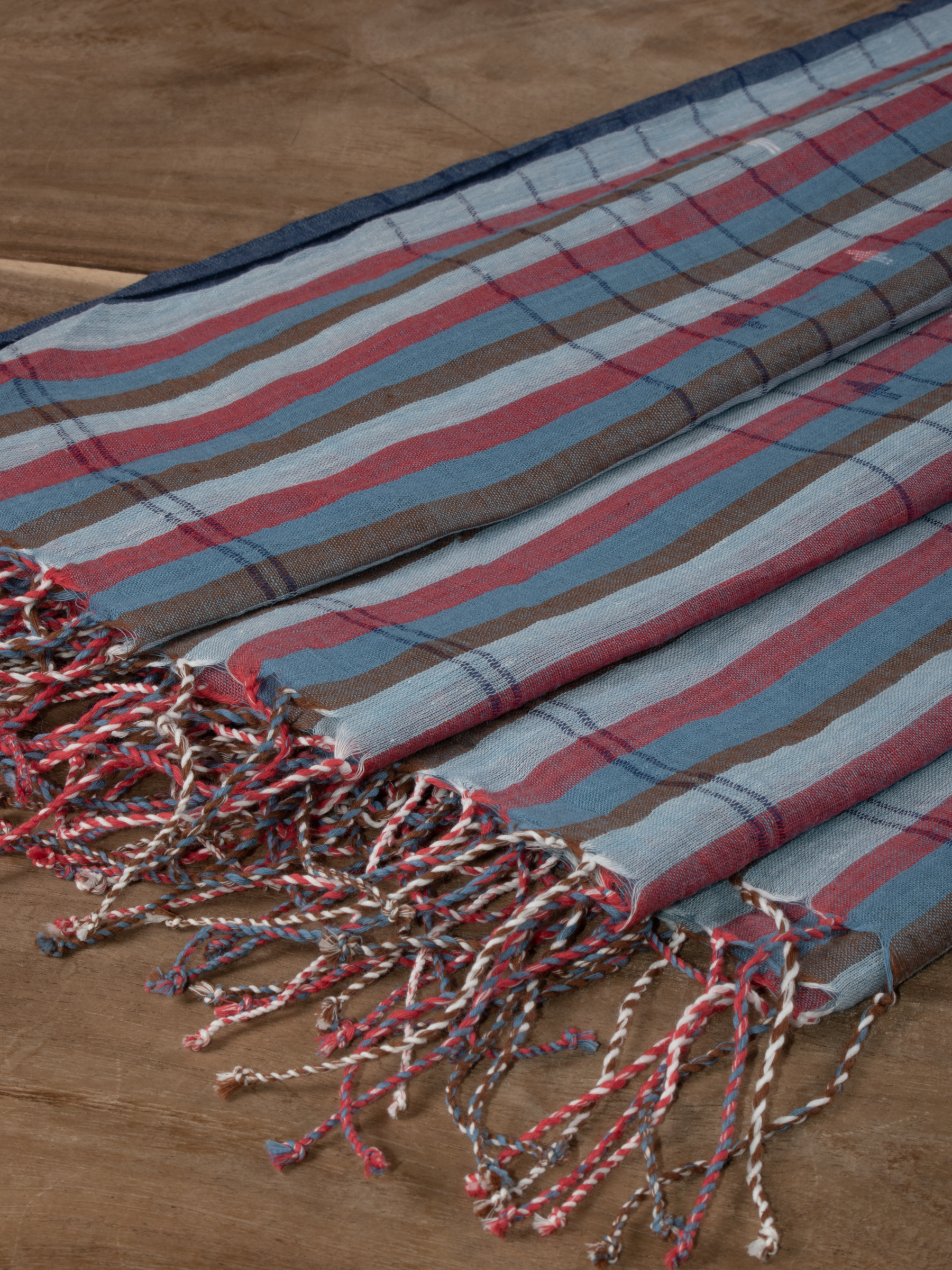 Handwoven multicolour scarf with striped design and Jamdani motifs