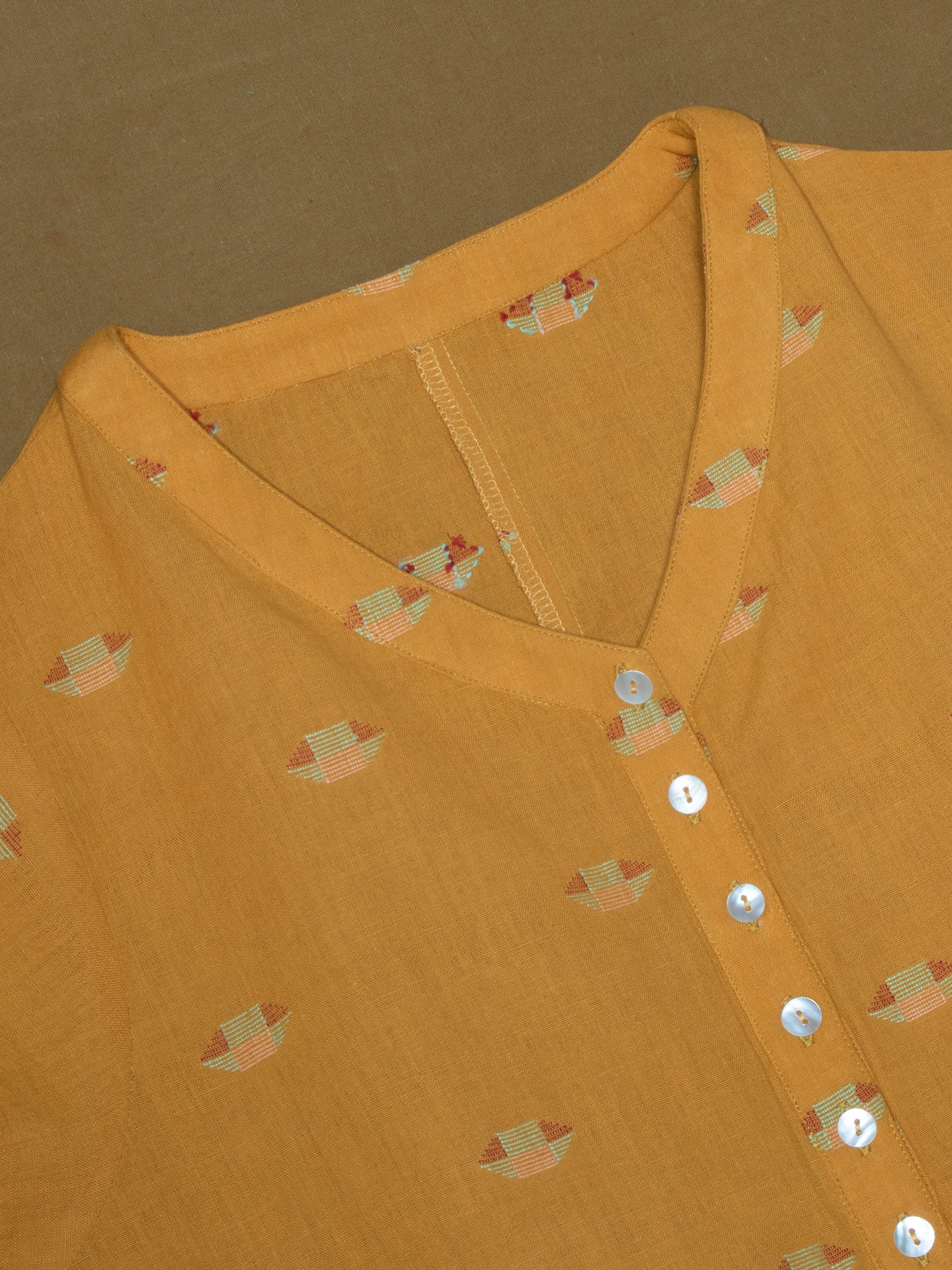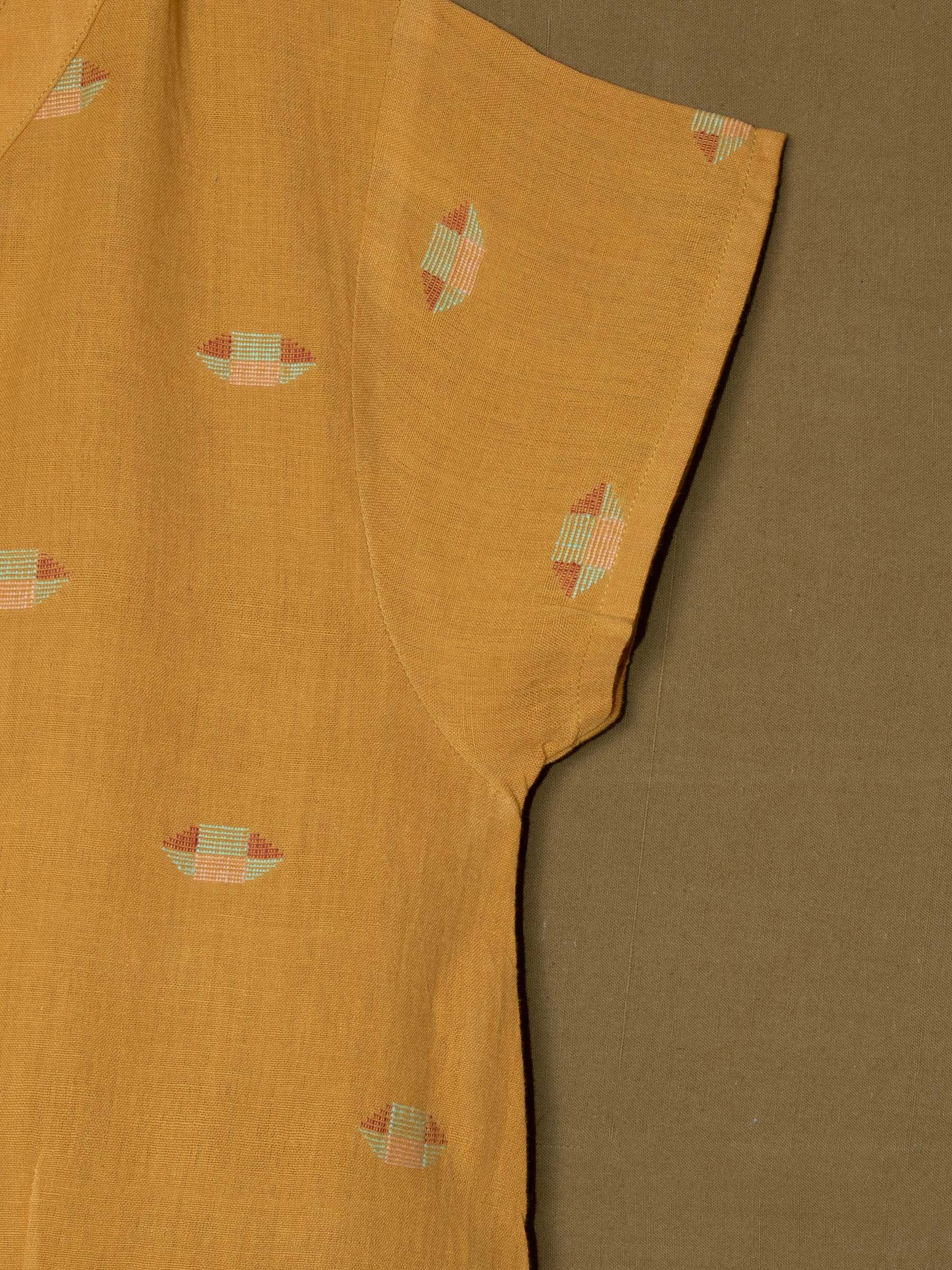This handwoven Jamdani romper in a rich mustard shade blends playful style with artisanal craftsmanship. Detailed with woven geometric motifs and a relaxed silhouette, it is soft, breathable, and durable—making it perfect for everyday wear with a conscious touch. Fully customizable in fabric and design, this versatile romper transitions seamlessly from casual outings to elevated occasions.