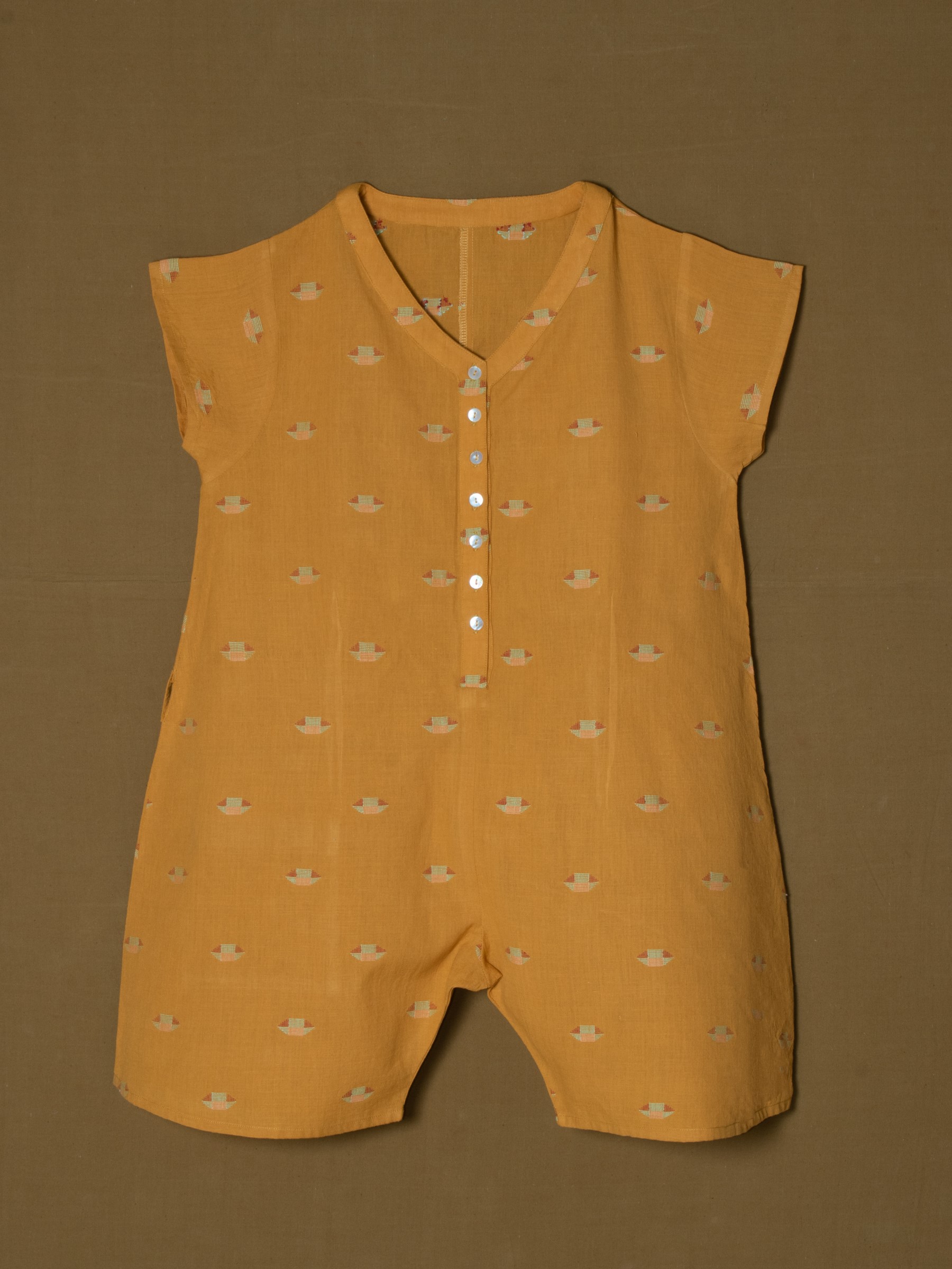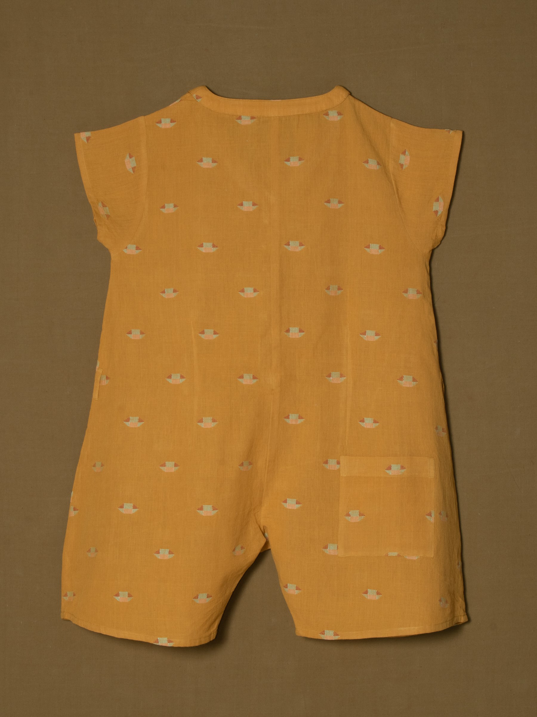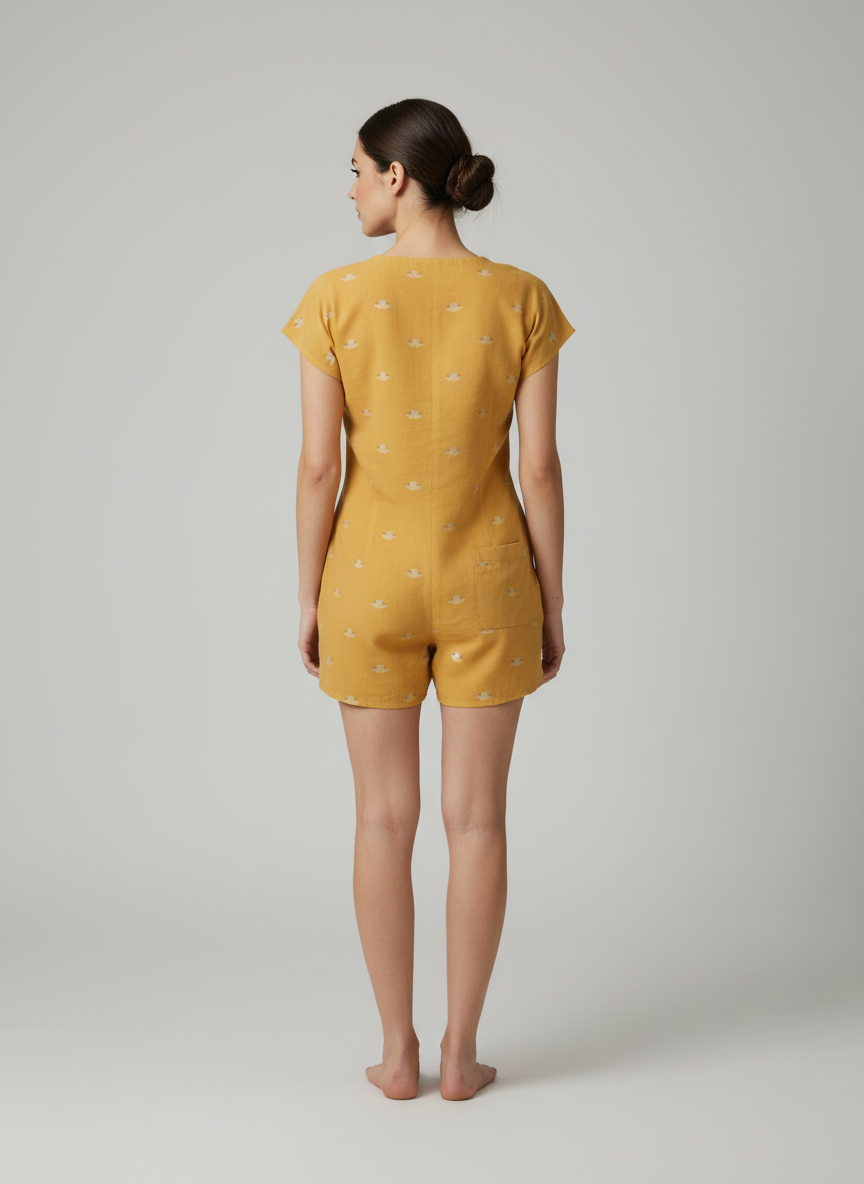 Mustard Jamdani romper with handcrafted woven detailing