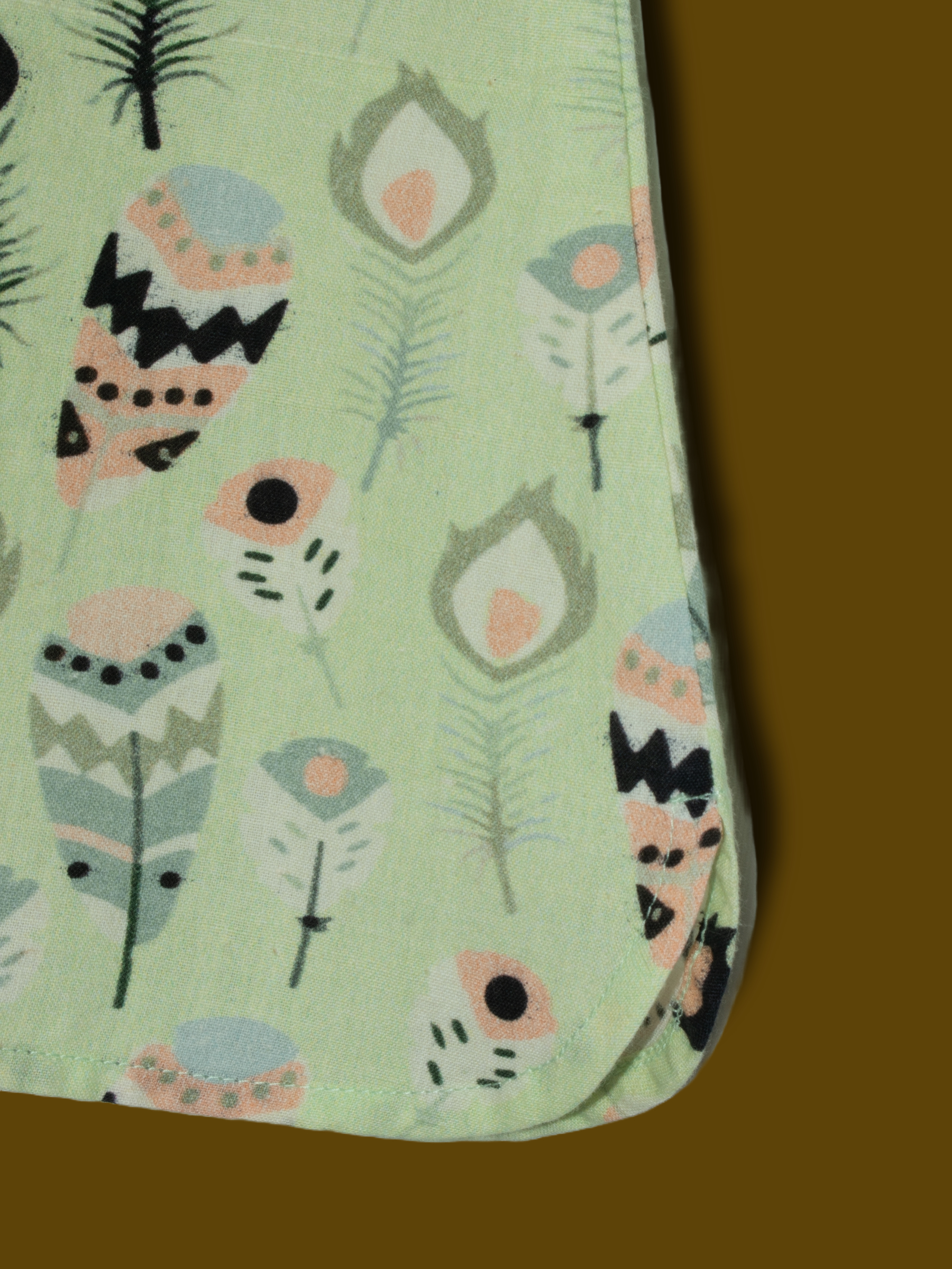 Soft green base with playful printed design.