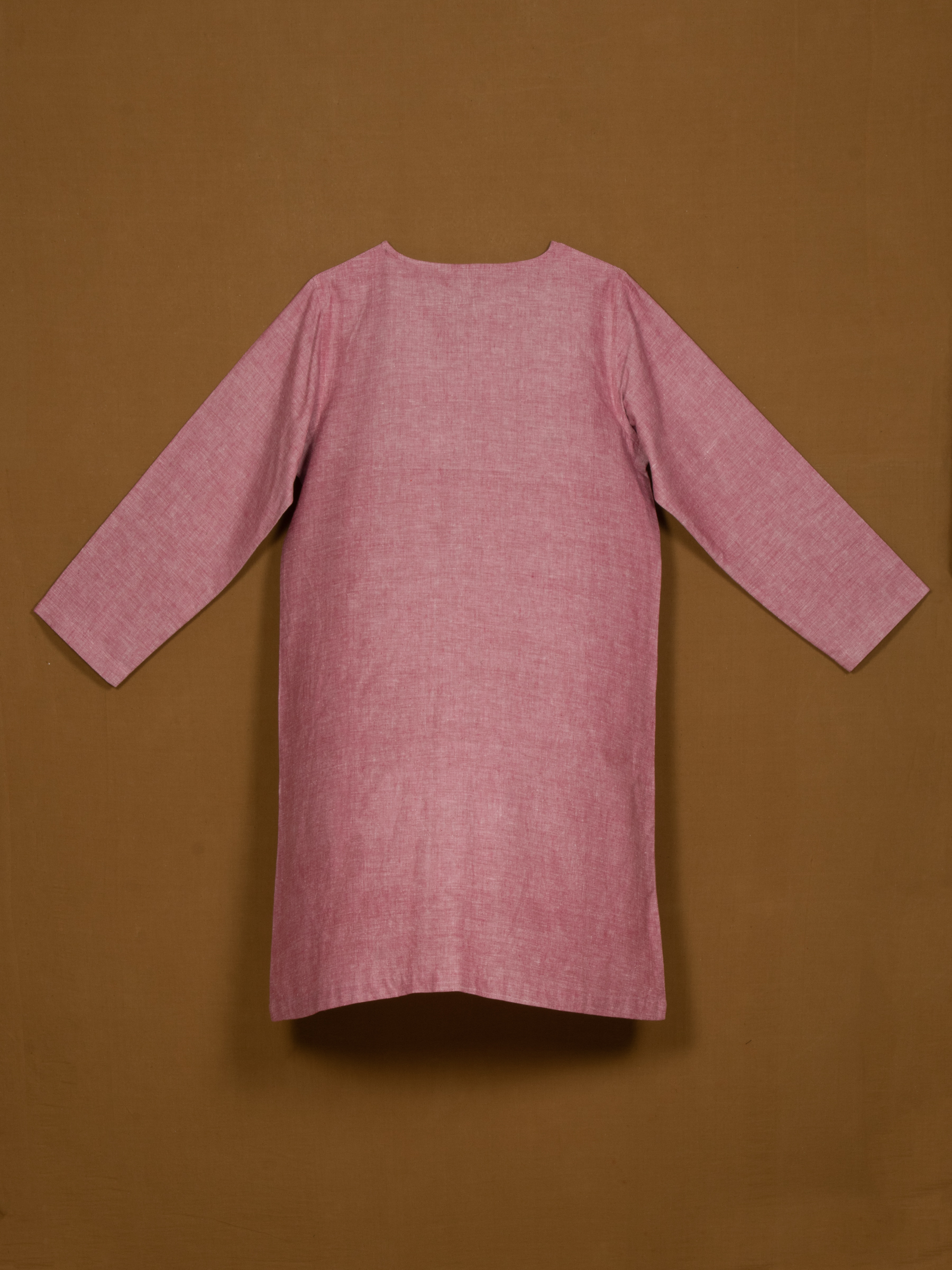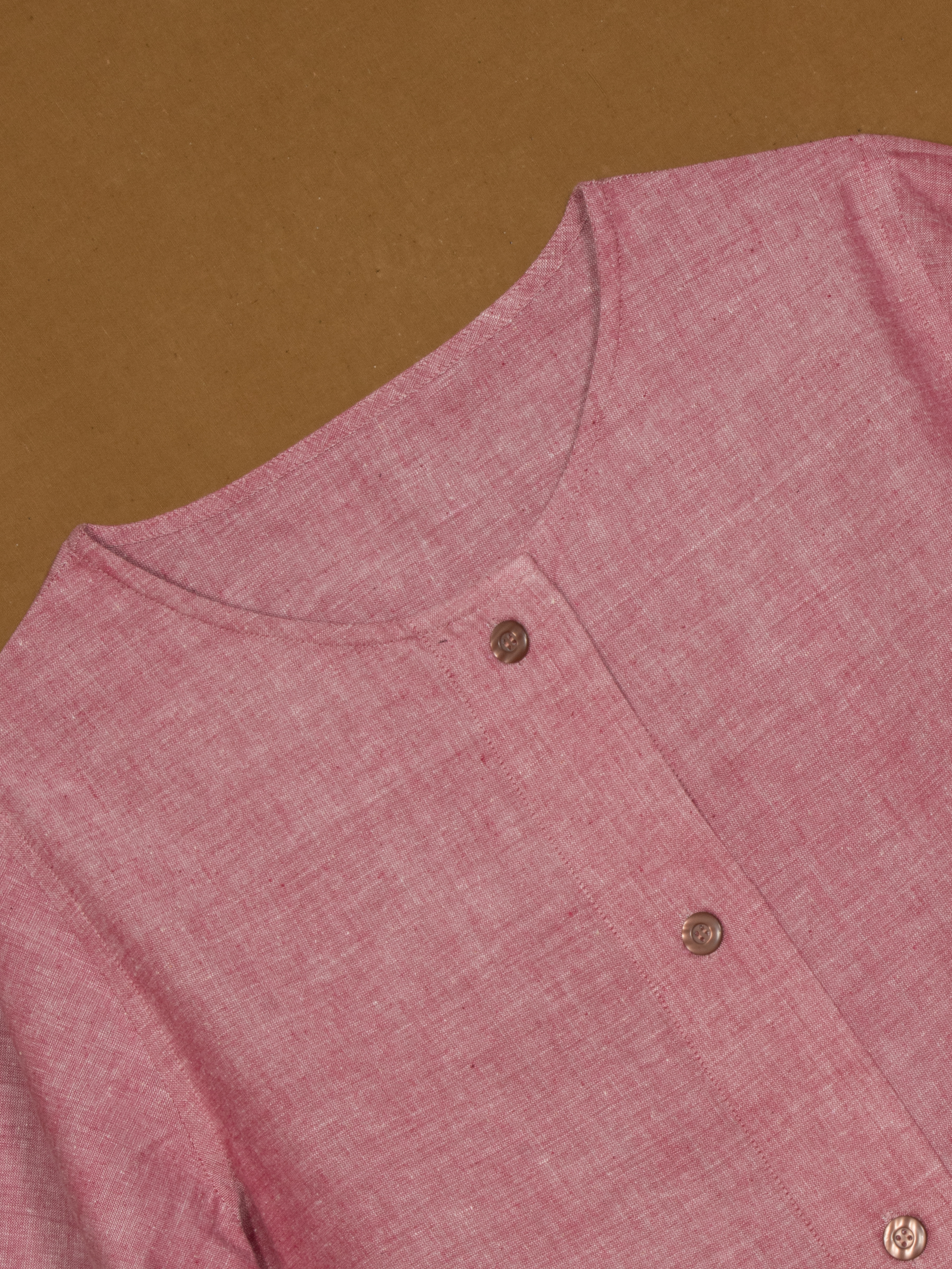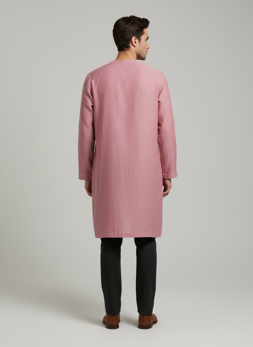 This minimalist design blends the ease of a knee-length coat with the sharp versatility of a unisex blazer. Featuring a continuous placket front, clean round neckline, and streamlined structure, it’s a timeless piece for modern sustainable wardrobes.