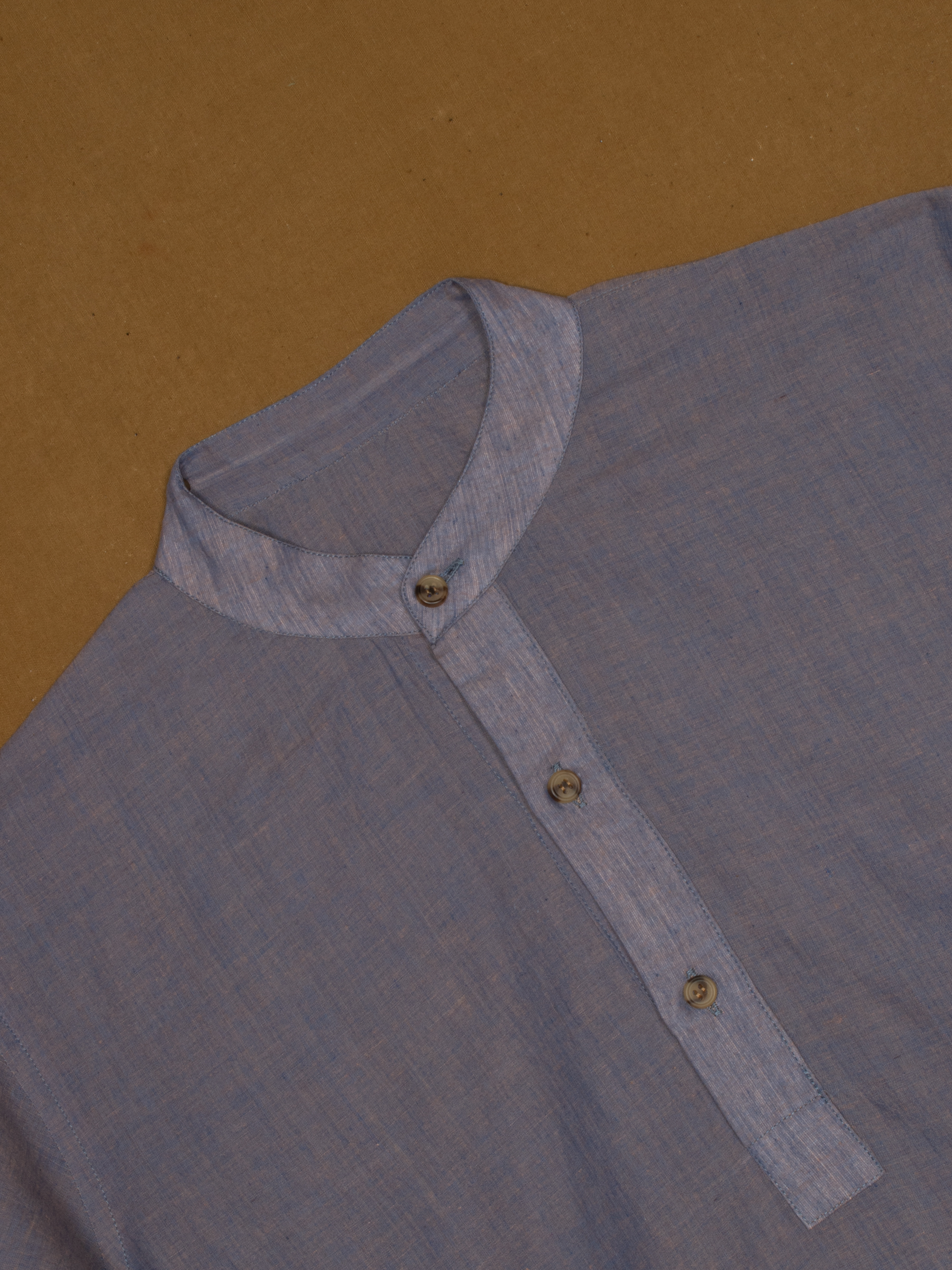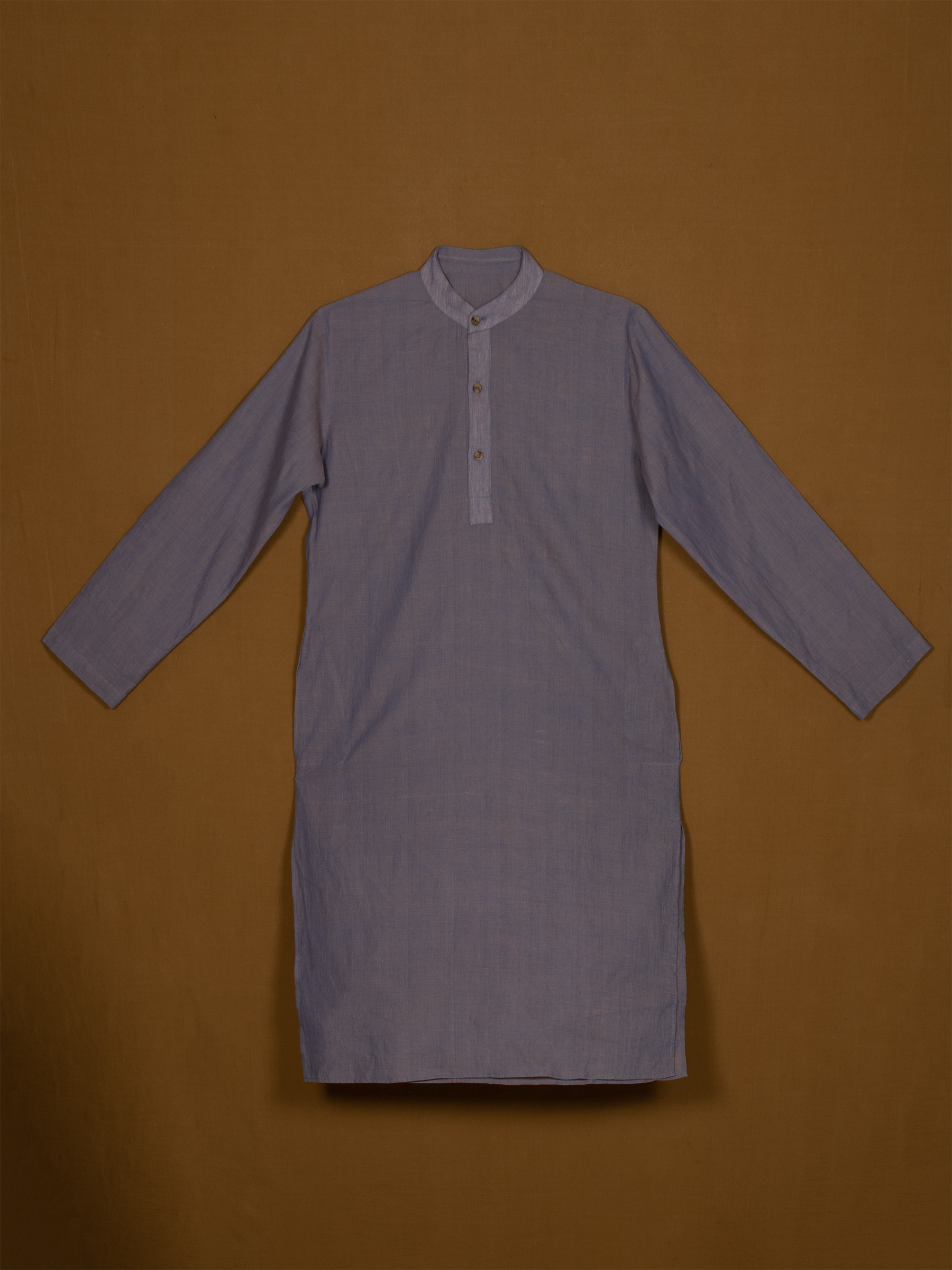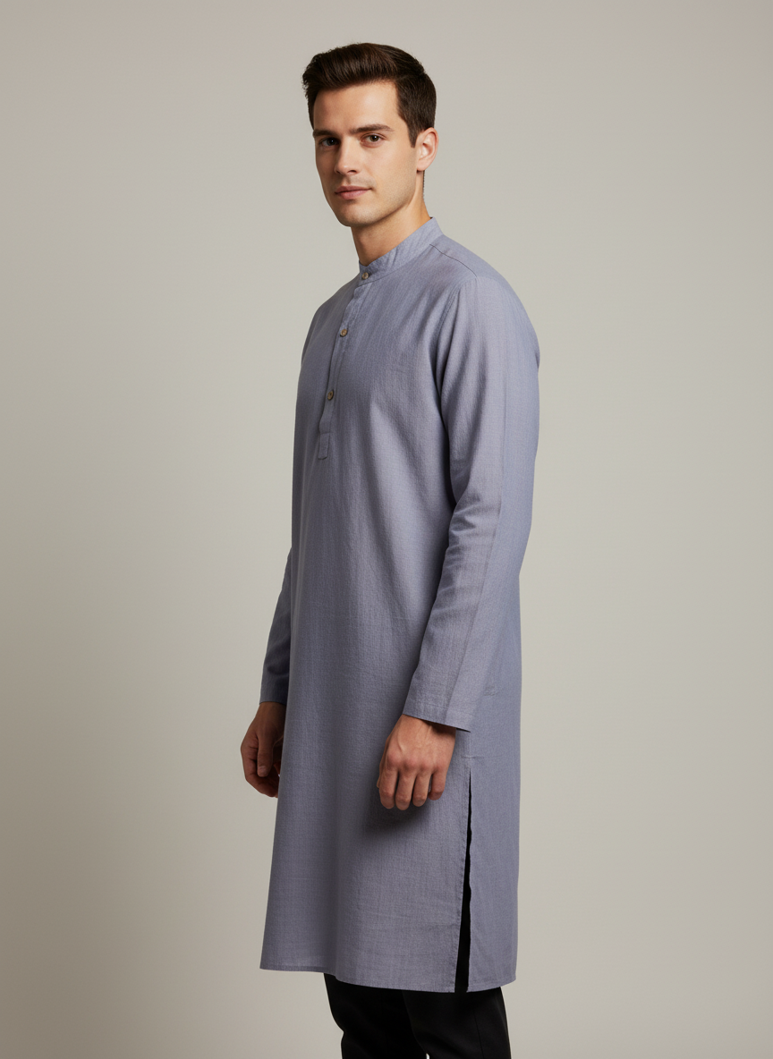 A refined essential for modern wardrobes, this designer kurta for men blends minimalist elegance with traditional tailoring. The Mandarin collar and clean buttoned placket create a sharp, contemporary look, while full sleeves add structure and versatility. Crafted from soft, breathable fabric, it delivers unmatched comfort, making it ideal for both festive occasions and everyday sophistication.