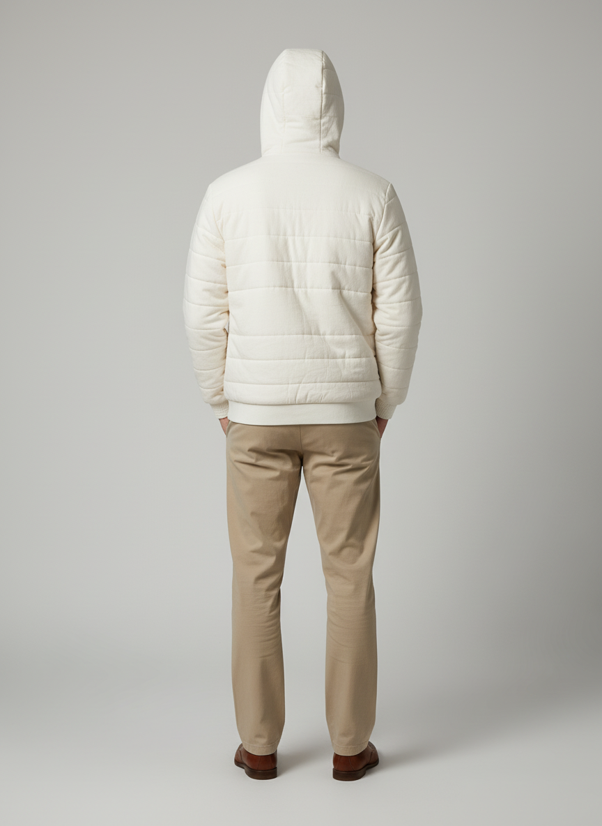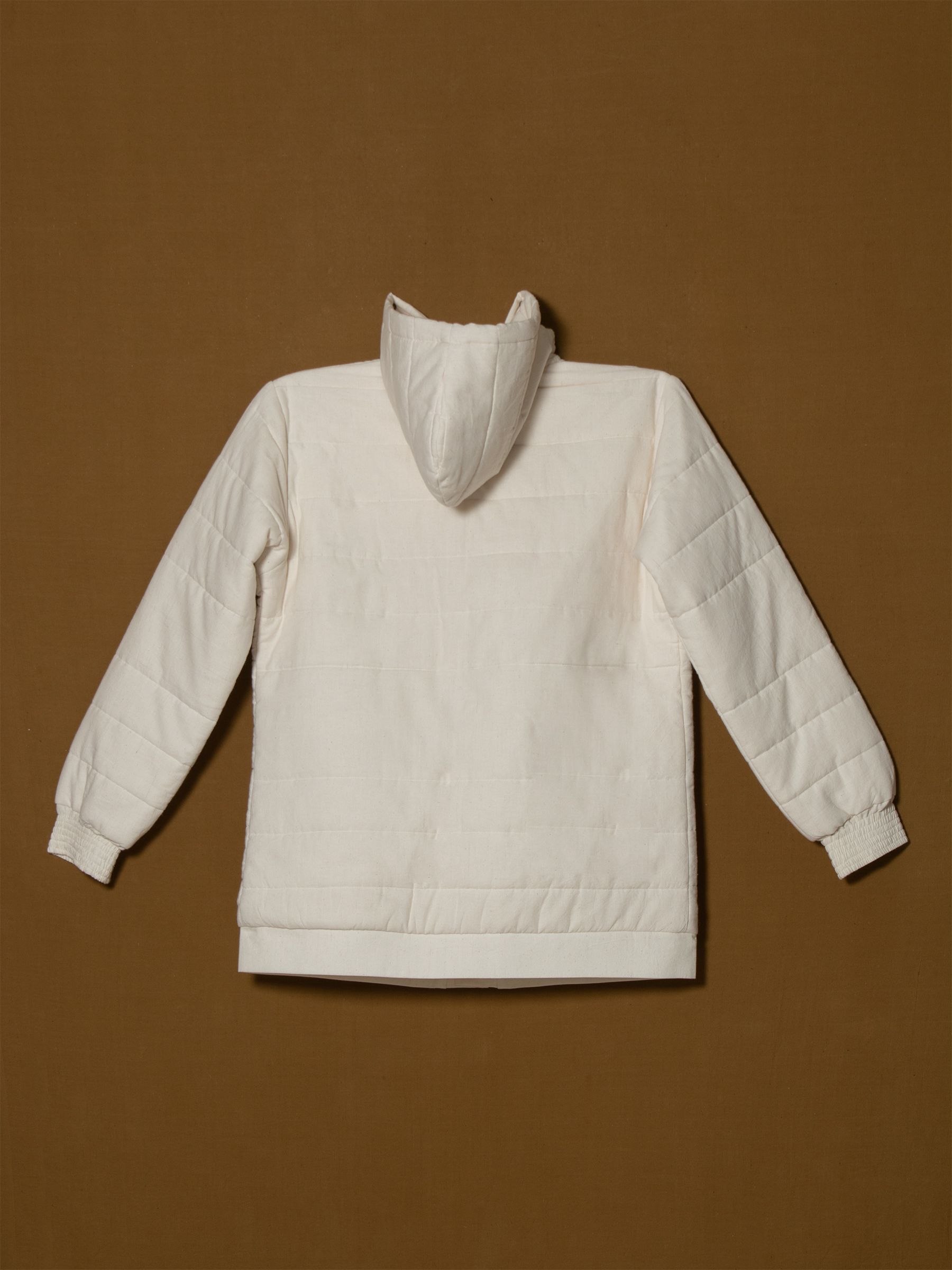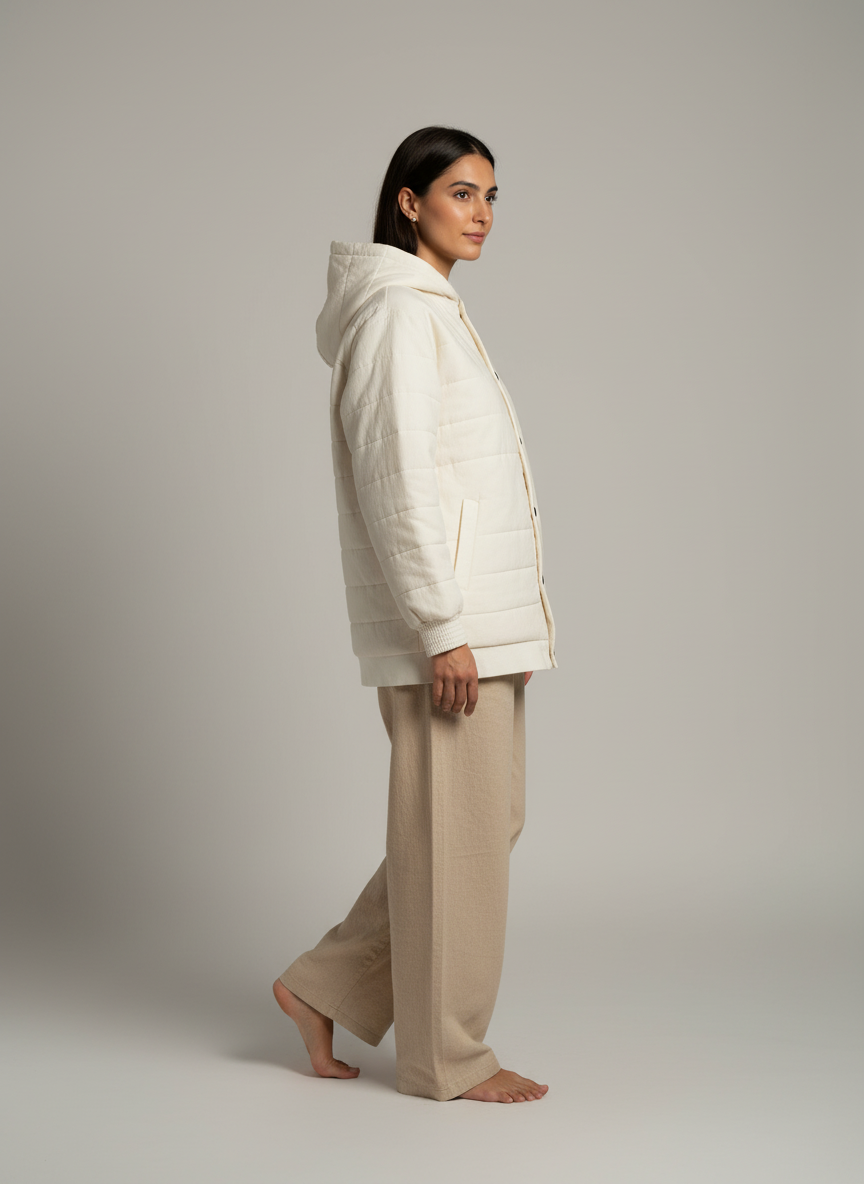 A modern cotton hoodie designed for warmth and ease, this piece combines a structured silhouette with a relaxed oversized fit. Crafted from breathable handwoven cotton with a quilted finish, it ensures comfort for winter layering while maintaining a clean, timeless look. Customizable in fabric and detailing, it’s an ethical essential for brands seeking versatile outerwear with a sustainable edge.