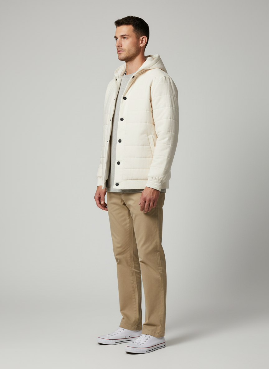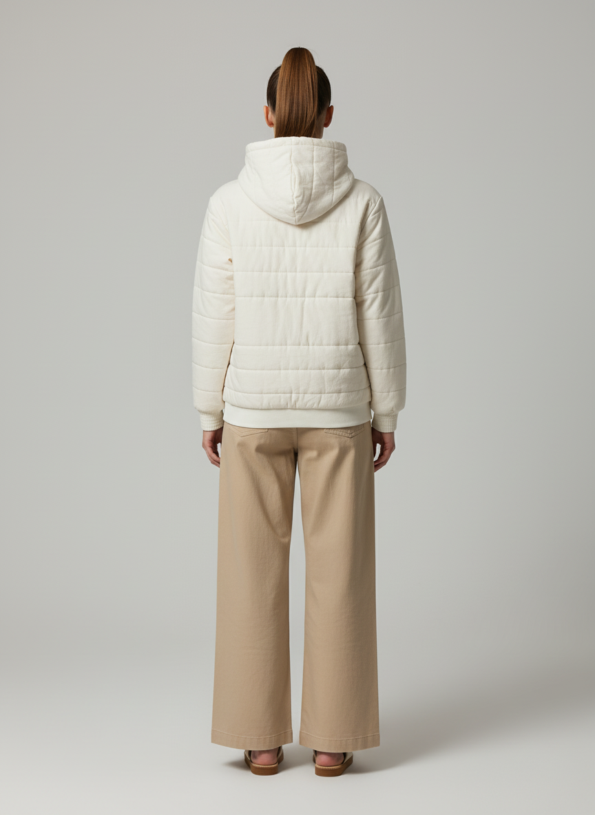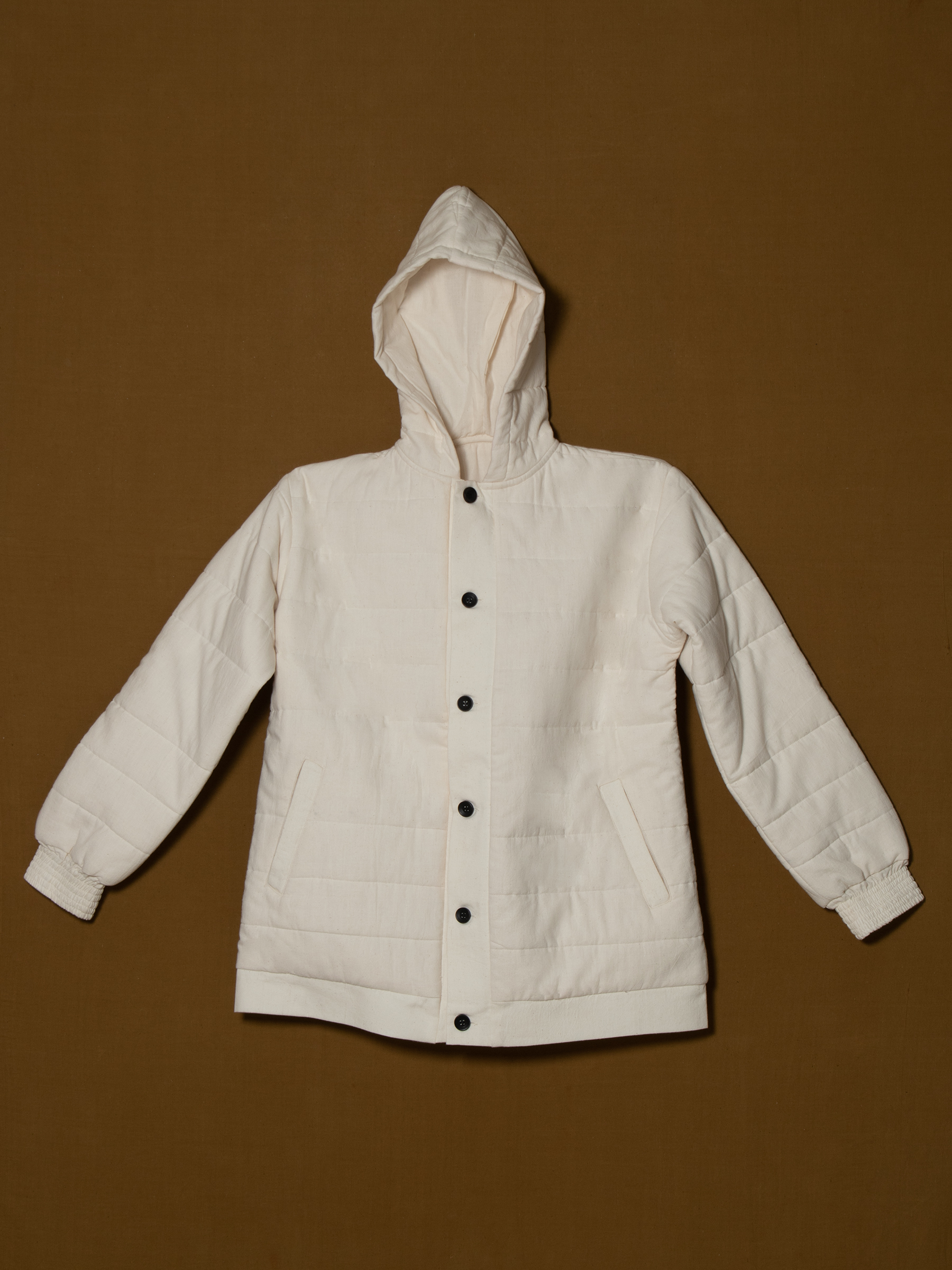 A modern cotton hoodie designed for warmth and ease, this piece combines a structured silhouette with a relaxed oversized fit. Crafted from breathable handwoven cotton with a quilted finish, it ensures comfort for winter layering while maintaining a clean, timeless look. Customizable in fabric and detailing, it’s an ethical essential for brands seeking versatile outerwear with a sustainable edge.