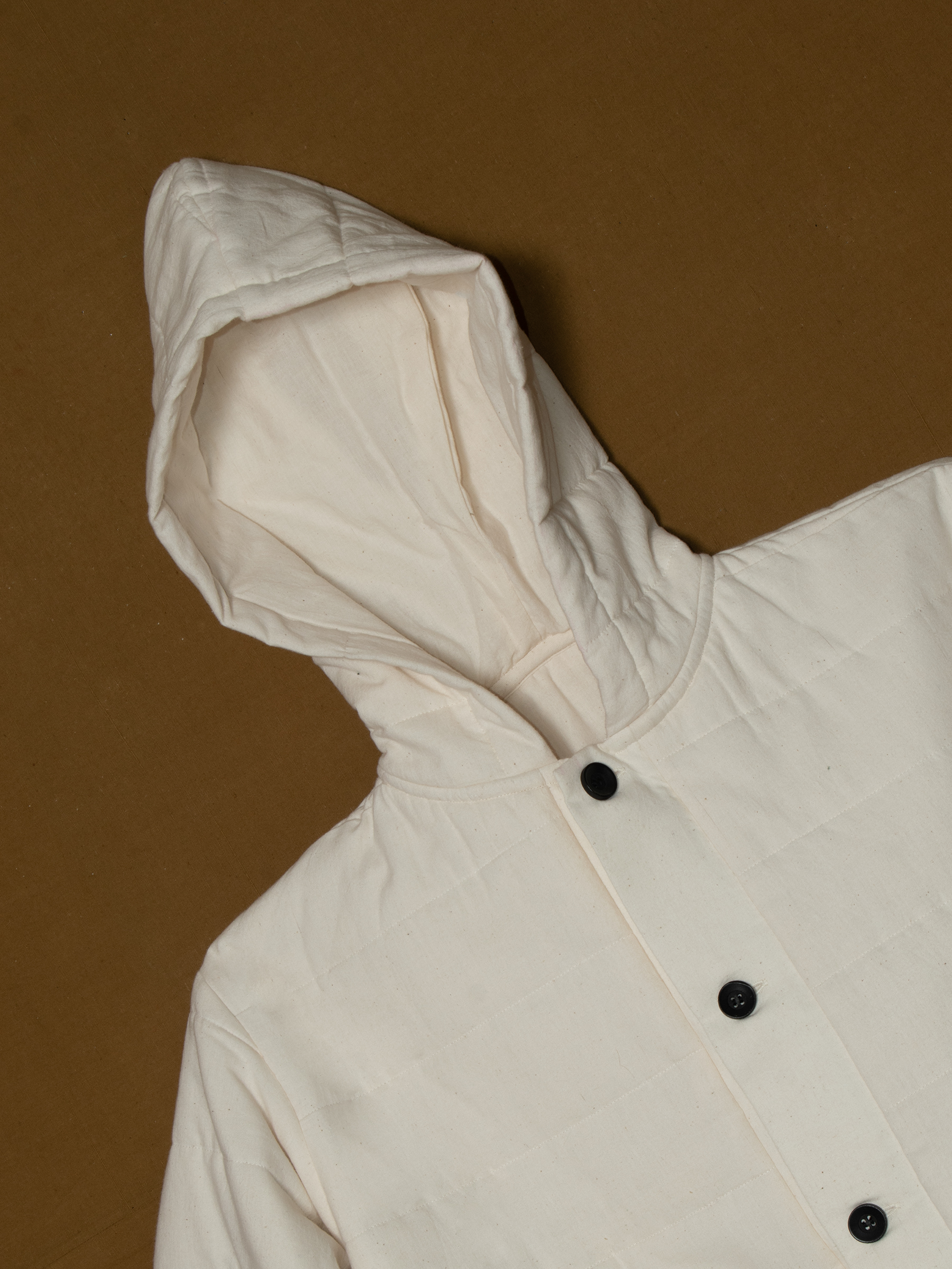 Quilted cotton hoodie with button-up front and functional pockets