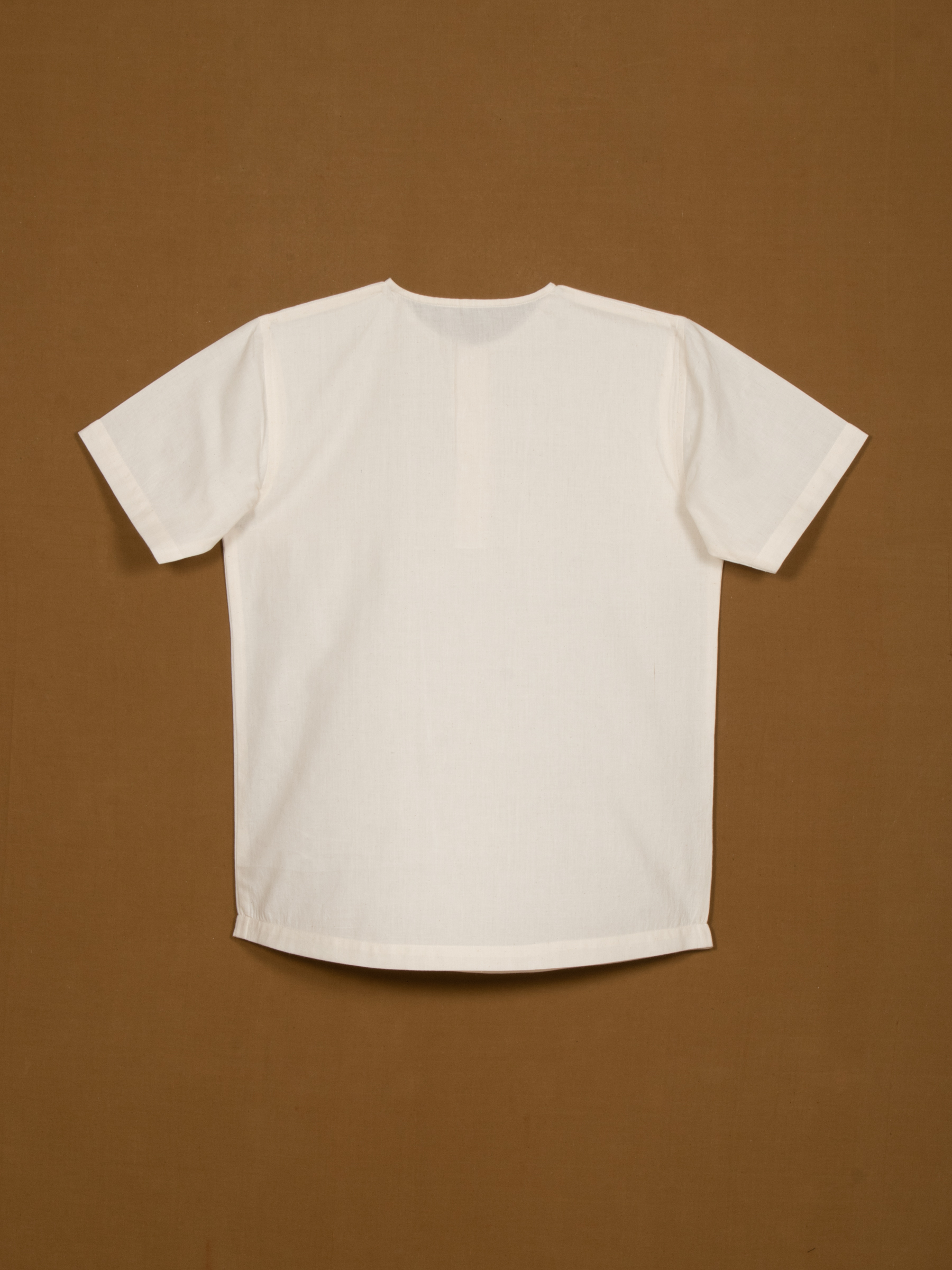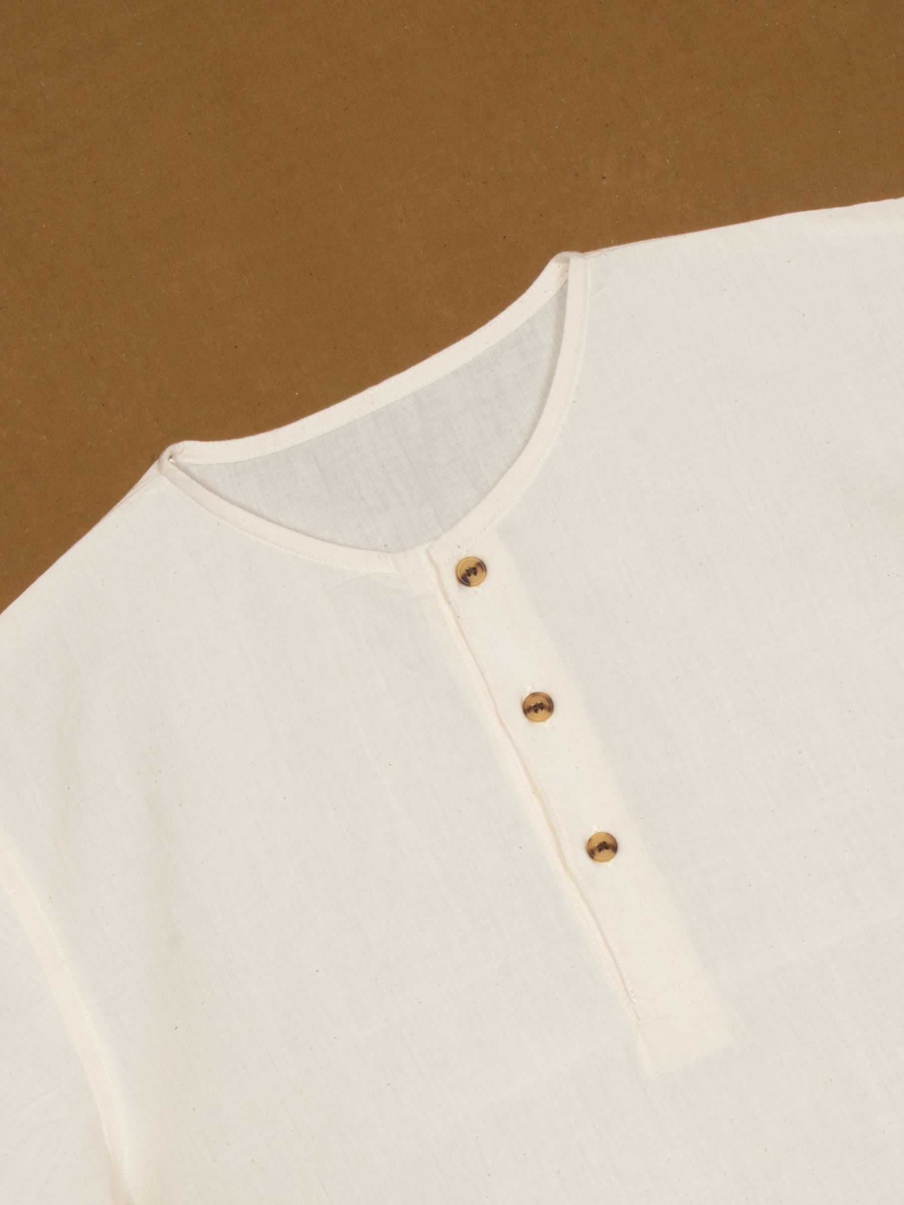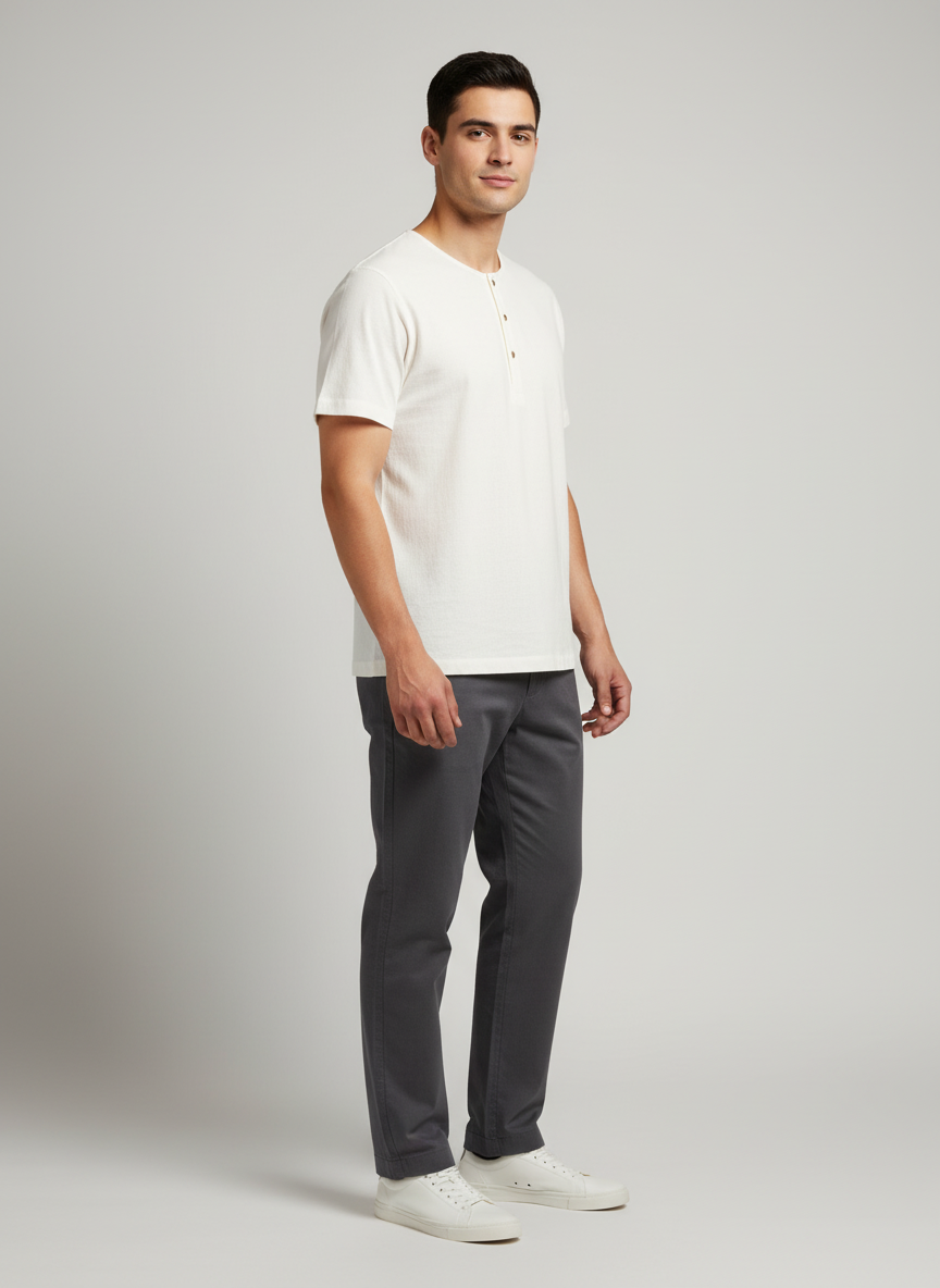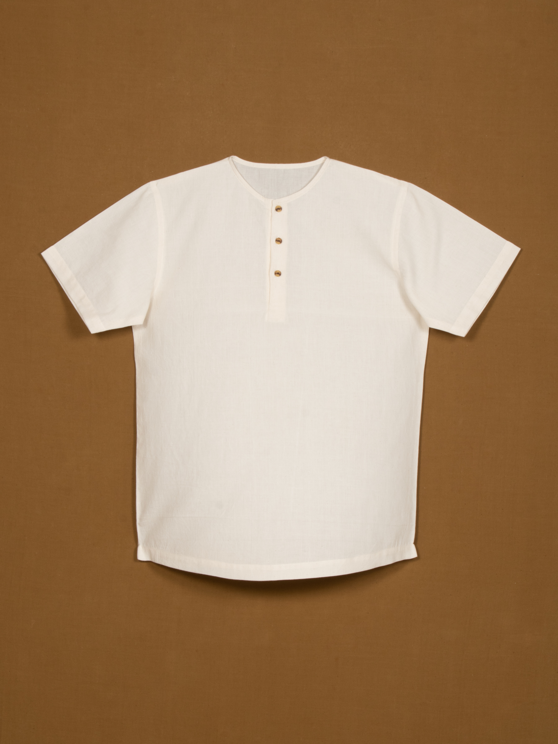 Blending the relaxed feel of a T-shirt with the refined touch of a popover placket, this piece is a modern twist on cotton shirts for men. Designed with a clean round neckline and short sleeves, it delivers breathable comfort and timeless simplicity. Perfect for casual wear yet versatile enough to style up, it’s a go-to essential for every season.