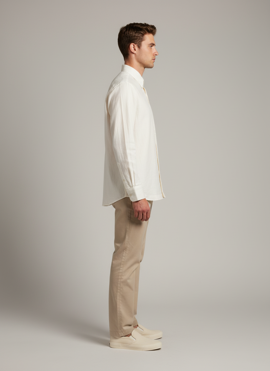 A refined twist on the classic collared shirt, this design features a spread collar paired with a sleek popover placket for understated elegance. The long buttoned cuffs add a tailored finish, making it versatile enough for both professional and casual wear. Crafted from breathable, hand-finished cotton, it ensures all-day comfort while reflecting artisanal craftsmanship. Perfect for those who appreciate timeless style with subtle detailing.