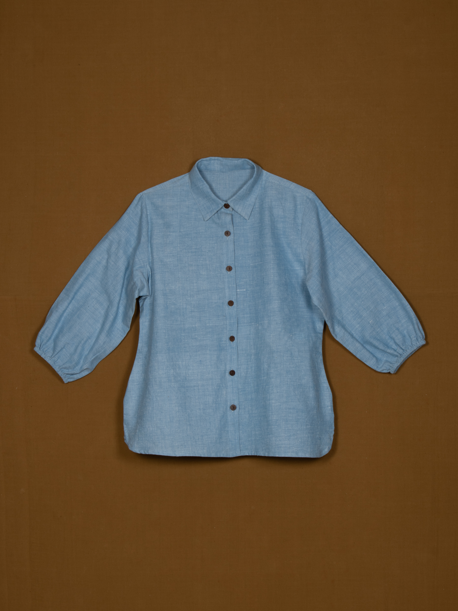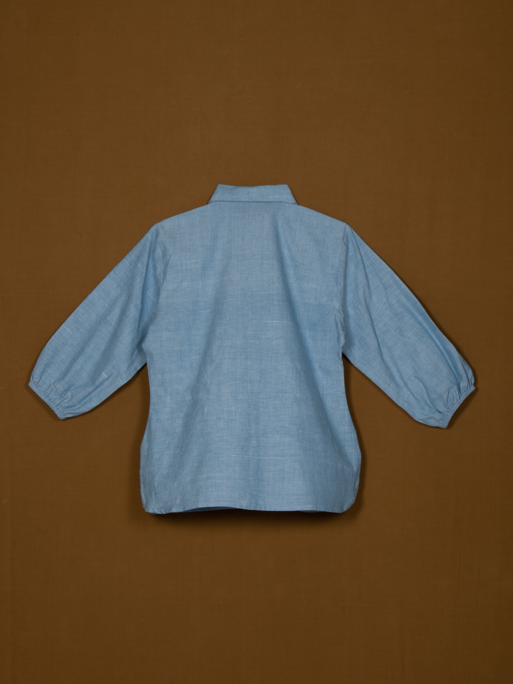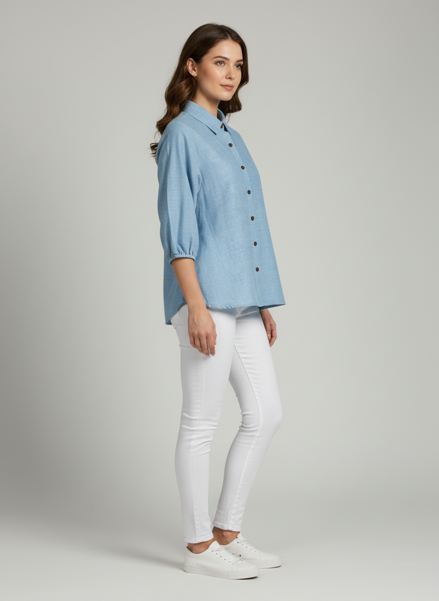 Elegant yet relaxed, this Spread Collared Shirt adds a feminine twist to the classic collared shirt. Designed in a soft blue tone with a buttoned placket, it features voluminous balloon sleeves that bring effortless charm. Perfect for casual days or semi-formal styling, it balances structure with flow.
