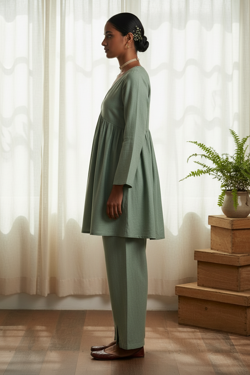 Chambray Light Green Khadi Cotton 92 GSM Handwoven Fabric