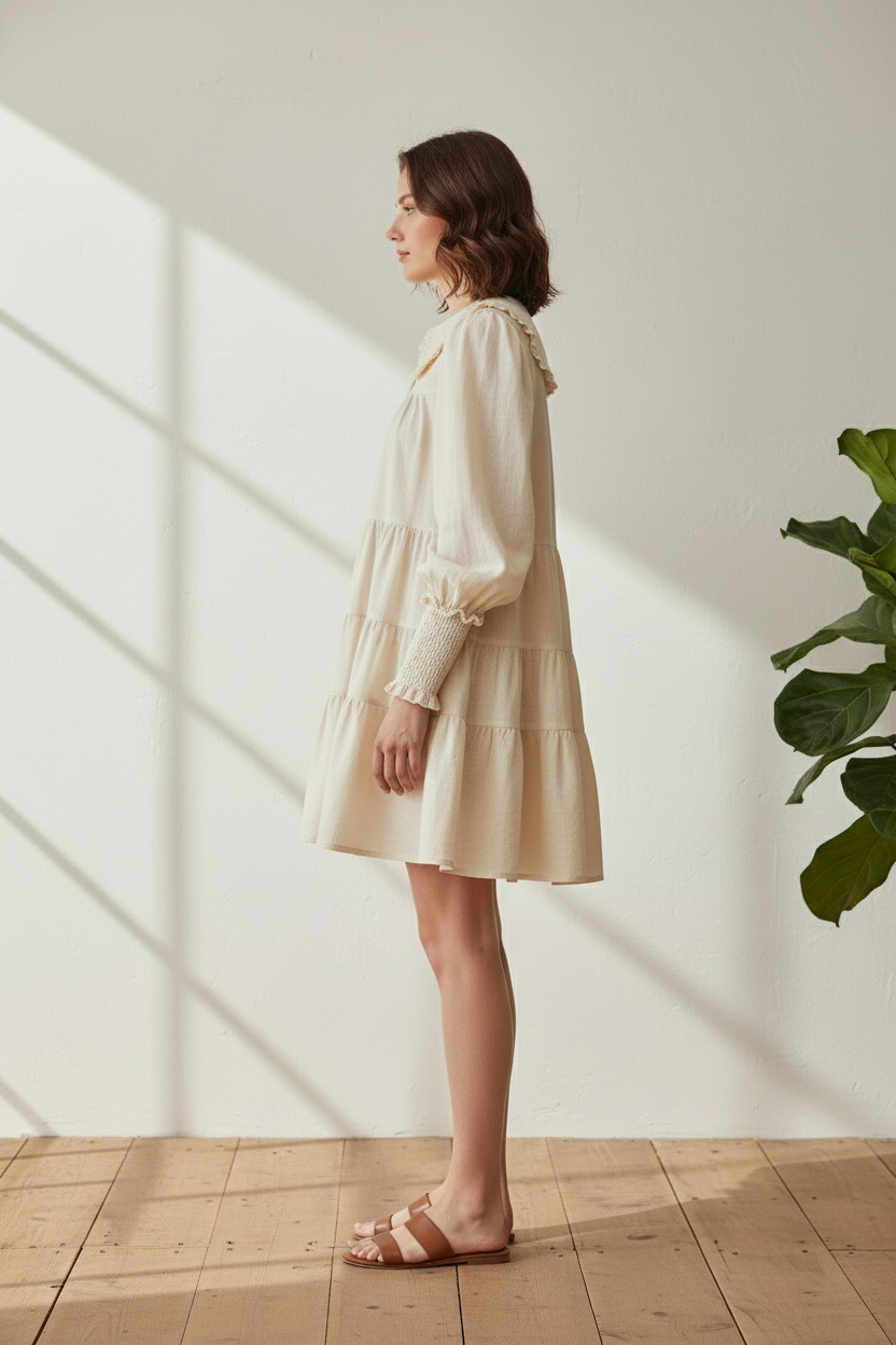 Timeless and versatile, this A-Line Panel Dress highlights the graceful simplicity of women’s dresses. Crafted in solid white with a clean panel cut, it offers a flattering flow that complements different body types. The three-quarter sleeves and soft drape make it an ideal choice for both casual outings and semi-formal occasions.