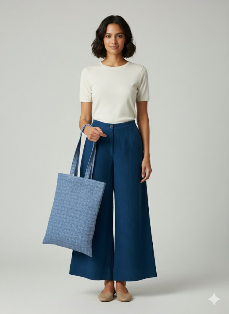 Our handcrafted tote bag is made from handwoven white Khadi cotton, offering a refined yet sturdy structure ideal for daily use. The fabric, woven by skilled artisans, ranges from 100 to 300 GSM—ensuring breathability, softness, and durability in every carry.