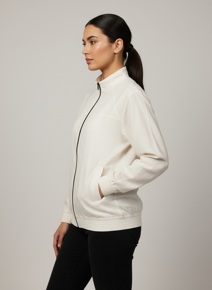 A versatile piece from our women's jackets collection, this zip-up blends cozy warmth with a clean, structured silhouette. Designed with full sleeves and a high neck, it’s tailored for effortless layering and timeless everyday style.