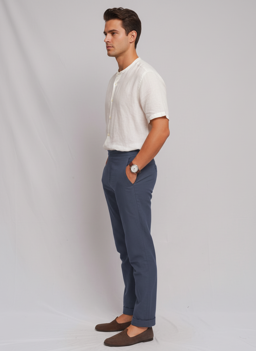 Redefine everyday elegance with this tailored cotton trouser in a modern slim-fit silhouette. Designed for both comfort and versatility, it features a clean front finish, side pockets, and a sharp taper that transitions seamlessly from workwear to casual outings. Handcrafted in breathable, durable cotton, these trousers bring structure without compromising ease of movement. Fully customizable in fabric and detailing, they’re the perfect addition to sustainable wardrobes and designer collections.
