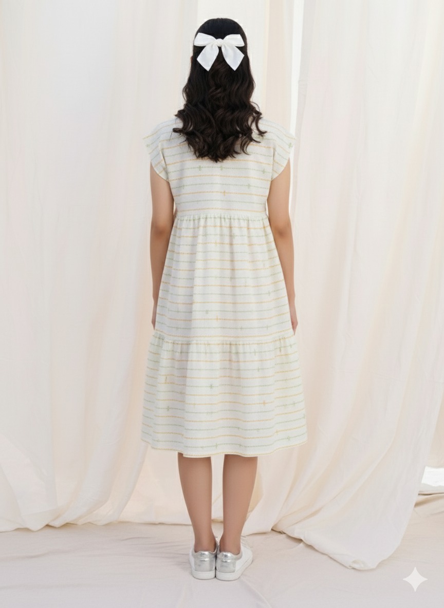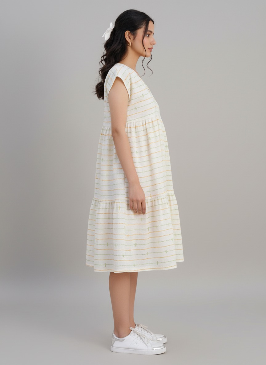 Effortless and versatile, this V-Neck Layered Dress is crafted to bring comfort and style into everyday dressing. The relaxed silhouette features a flattering V-neckline and layered tiers that create soft movement with every step. Made from breathable fabric, it ensures all-day ease while maintaining a chic, contemporary look. Perfect to pair with sneakers for a casual vibe or dress it up with sandals for brunches and evening outings, this dress is a timeless wardrobe essential for warm-weather styling.