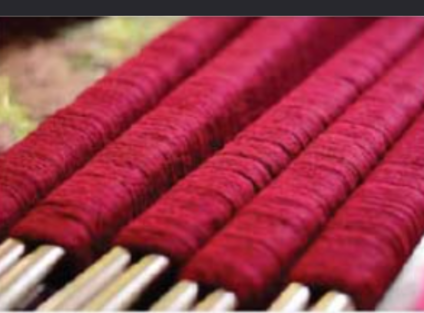 The weavers receive the necessary quantity of threads in different thread sizes and colors according to the textile pattern. Threads for the weaving process and the dyes are also made ready for use.