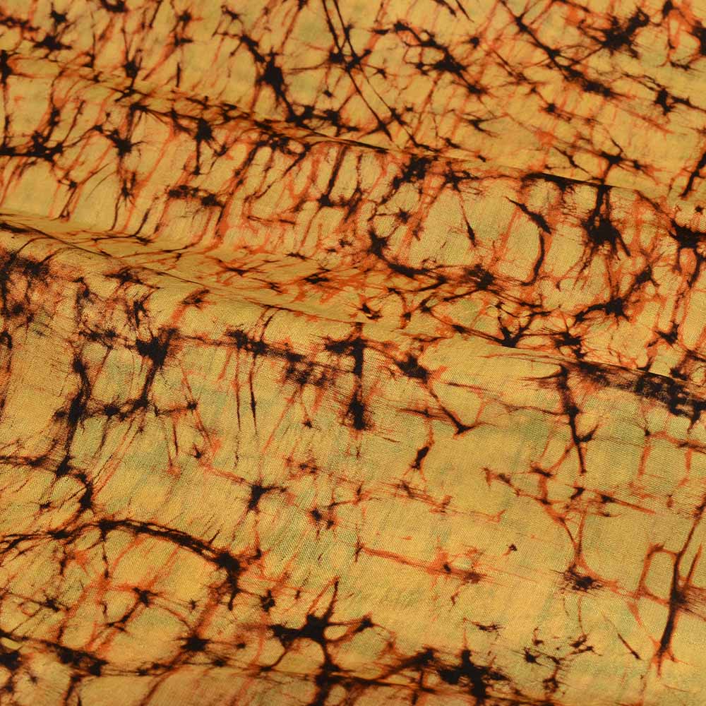 Envelop your creations in opulence with our Abstract Red Yellow Batik Mulberry Silk Fabric. Tailored for ethical designers, this 40 GSM masterpiece intertwines Mulberry Silk in both warp and weft, offering a luxurious embrace. The dynamic abstract pattern, adorned in vibrant red and golden yellow, exudes timeless charm. At a feather-light weight, it gracefully transitions into skirts, shirts, casual pants, and quilts. Beyond fashion, this fabric lends its grace to lightweight curtains, blouses, dresses, flowy scarves, and enchanting kidswear. Elevate your designs with the perfect fusion of ethical finesse, quality, and vibrant elegance.