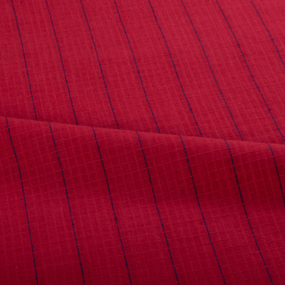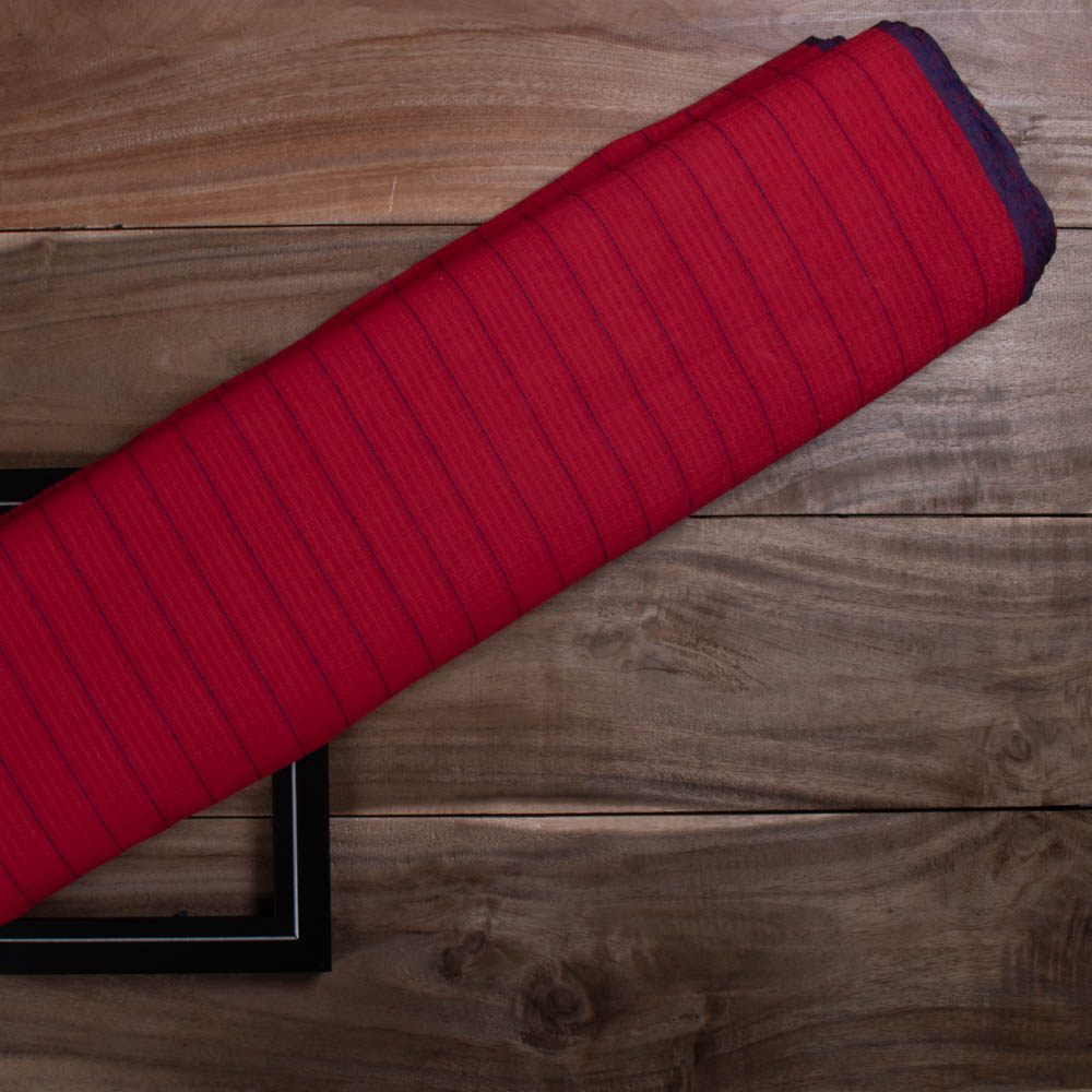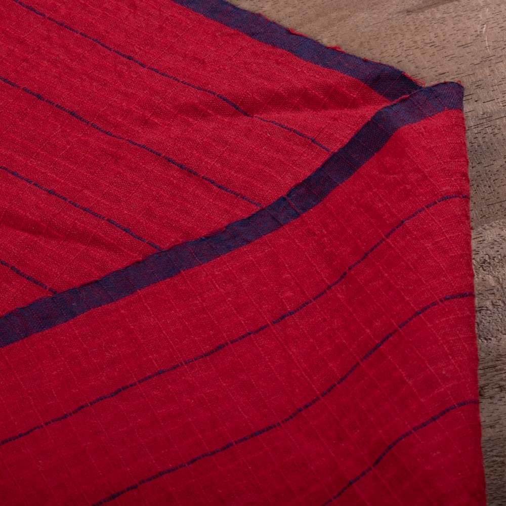 Designed for ethical and sustainable brands, this Check Fabric in Blue Red features a handwoven pure cotton warp and weft. Weighing 80 GSM, it strikes the perfect balance between lightness and structure. The check pattern and soft, breathable, and durable finish make it ideal for versatile creations like everyday wear, accessories, and home textiles rooted in conscious craftsmanship.