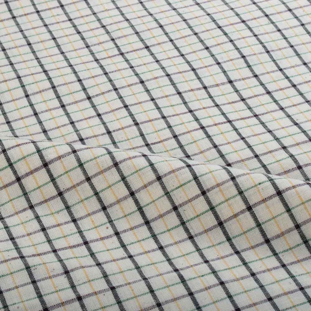 Designed for ethical and sustainable brands, this Check Fabric in Multicolor features a handwoven pure cotton warp and Khadi weft. Weighing 115 GSM, it strikes the perfect balance between lightness and structure. The check pattern and soft, breathable, and durable finish make it ideal for versatile creations like everyday wear, accessories, and home textiles rooted in conscious craftsmanship.