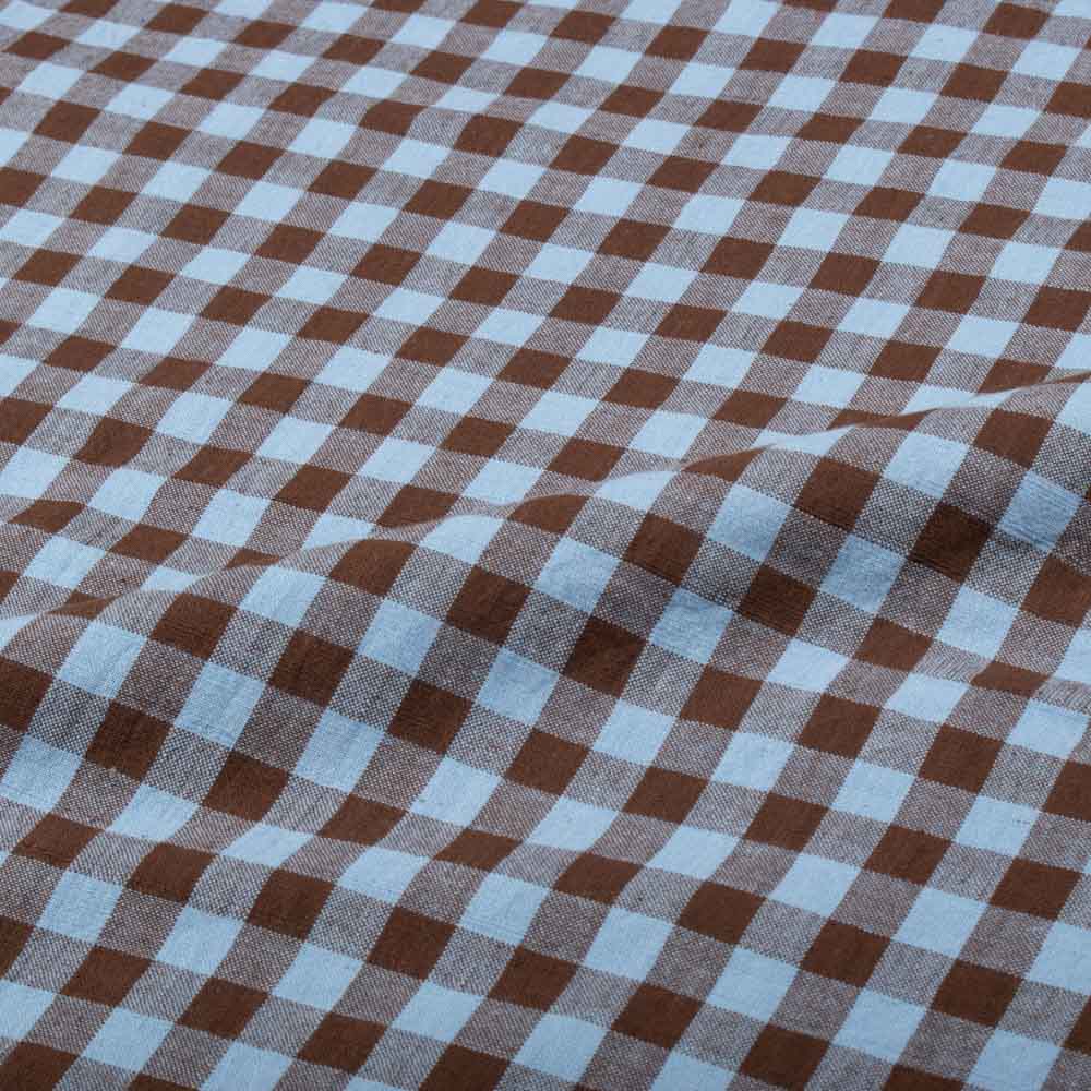 This Dark Brown and Sky Blue Check Pure Cotton 110 GSM Handwoven Fabric offers a neat, versatile gingham look with a soft, breathable feel. Light to midweight, it drapes comfortably on the body, ideal for shirts, dresses, kurtas, tunics, co ord sets and kidswear. The balanced 110 GSM construction keeps it opaque enough for everyday outfits while staying cool in warm weather and easy to layer in milder seasons. Clean checks give garments a polished yet relaxed vibe that works for workwear, uniforms or weekend pieces.