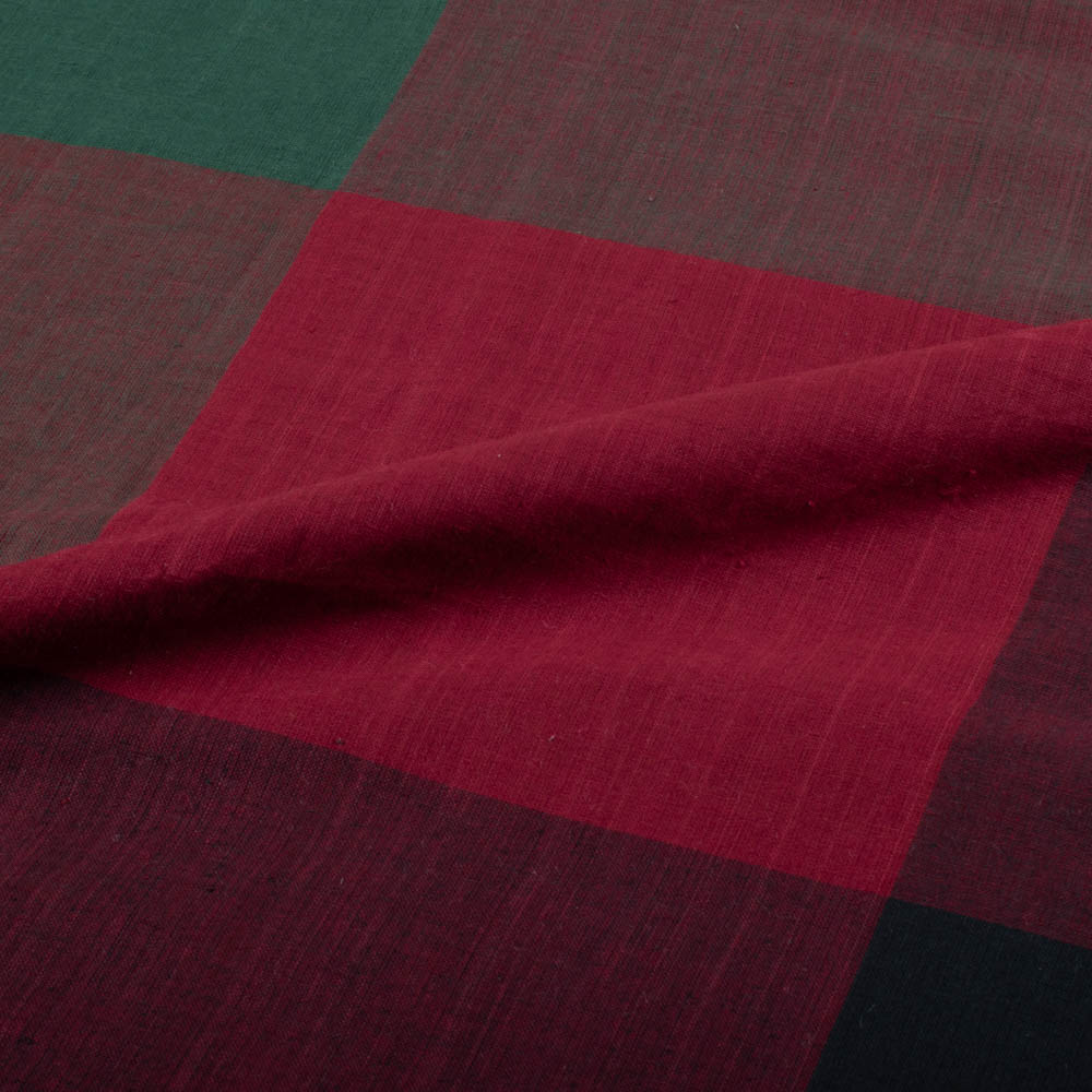 This Multicolor Check Pure Cotton 90 GSM Handwoven Fabric features bold blocks of deep red and green that give a rich, contemporary take on classic checks. Lightweight and breathable, it drapes softly on the body, making it ideal for shirts, dresses, tunics, kurtas, co-ord sets, and kidswear. The fine 90 GSM construction keeps it comfortable in warm and humid weather while remaining opaque enough for everyday outfits.