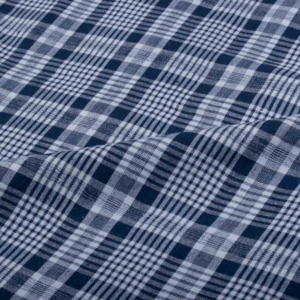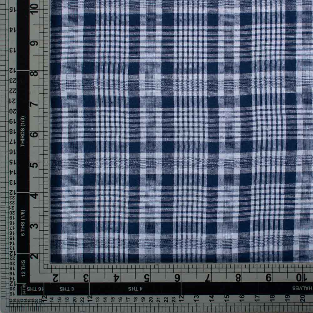 This Navy Blue and White Check Pure Cotton 100 GSM Handwoven Fabric delivers a structured, high-clarity check created from fine, evenly spaced yarns. The contrast between deep navy and clean white gives the pattern a classic, almost tailored finish. At 100 GSM, it sits in a light to midweight range that works well for shirts, dresses, kidswear, and smart casual pieces.