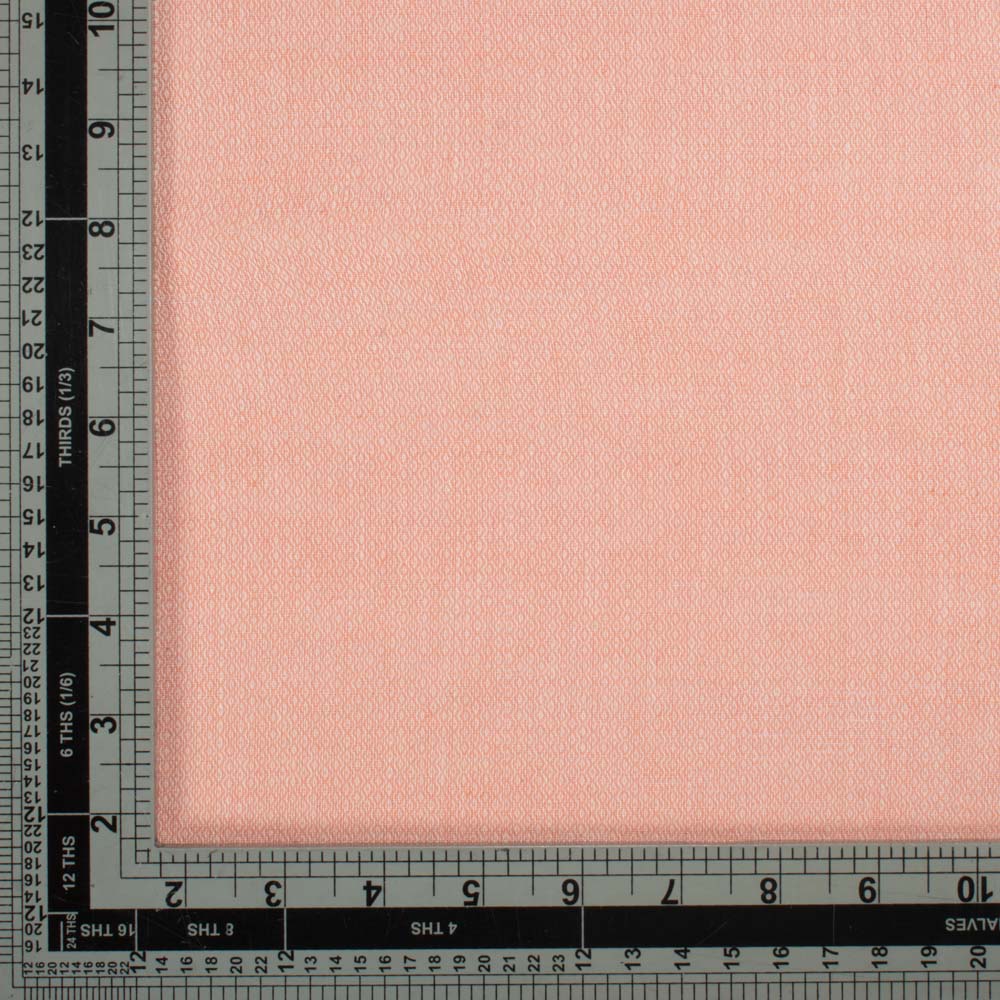 Designed for ethical and sustainable designers, this Jacquard Fabric in Peach features a refined diamond twill pattern handwoven with a cotton warp and khadi weft. Weighing 120 GSM, it offers a soft, breathable, and durable finish. Its elegant texture and medium weight make it ideal for versatile end uses—from structured garments to refined home textiles.