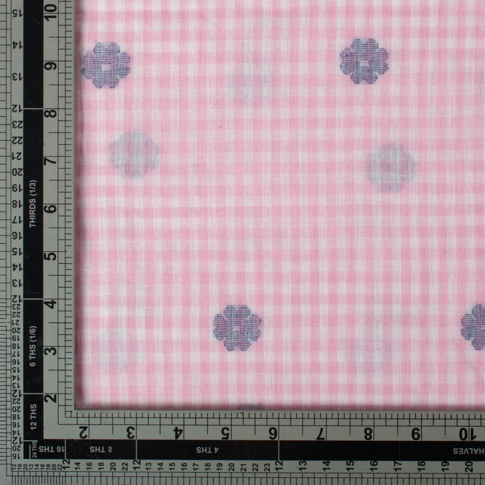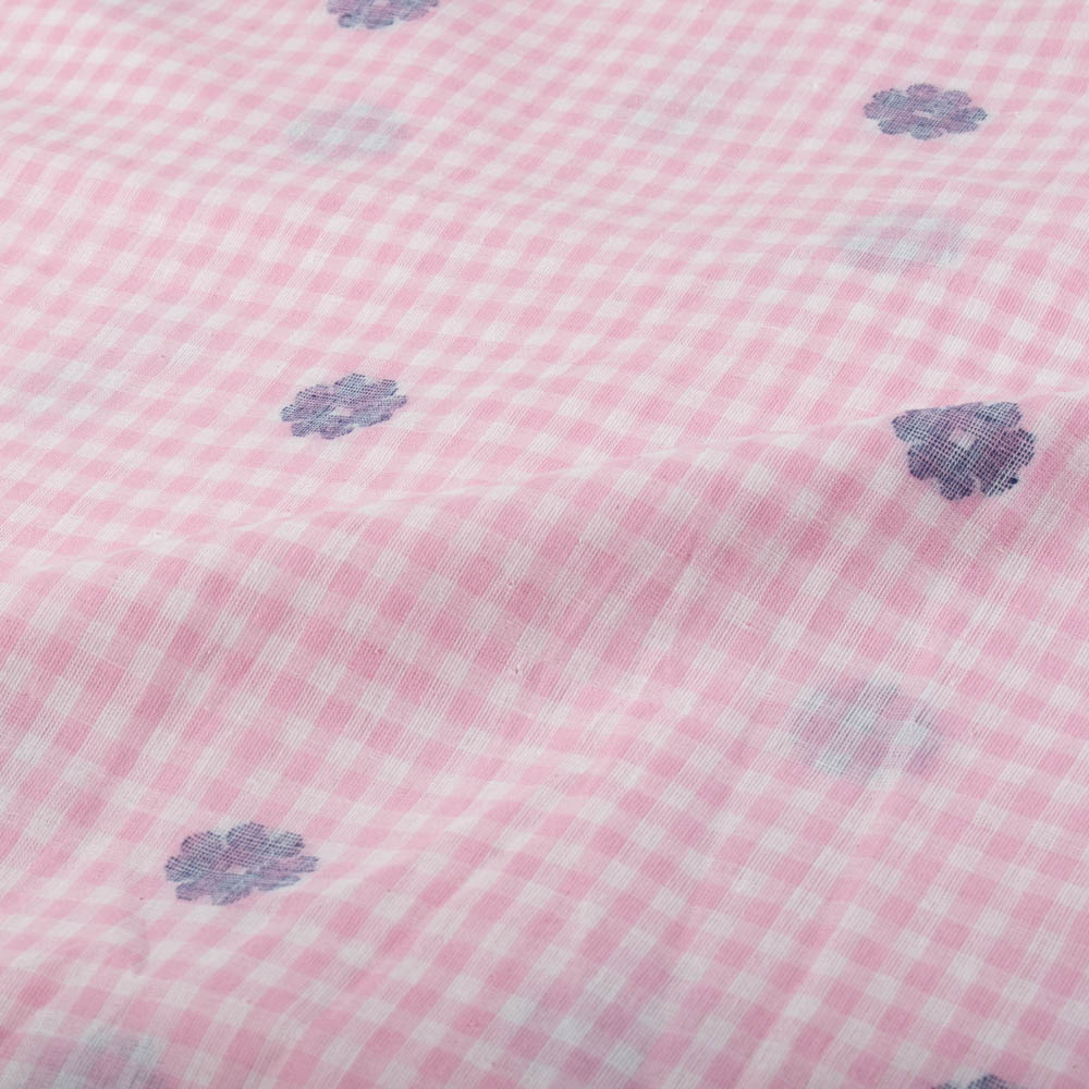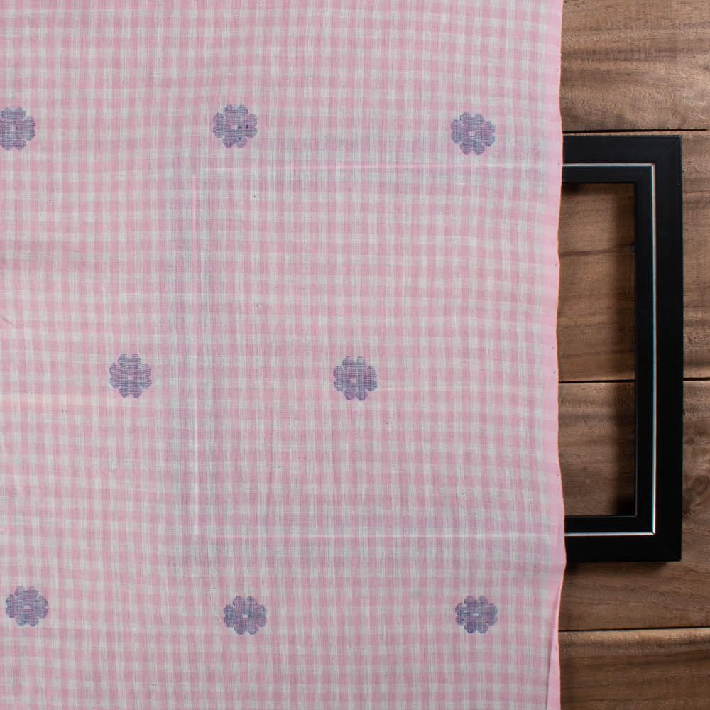 This Pink and White Check Flower Motif Jamdani Pure Cotton Handwoven Fabric blends classic checks with delicate woven floral motifs that break the grid in a quiet, intentional way. The handloom construction keeps the texture light and breathable, while the pink base adds a soft, feminine tone without slipping into overly sweet territory.