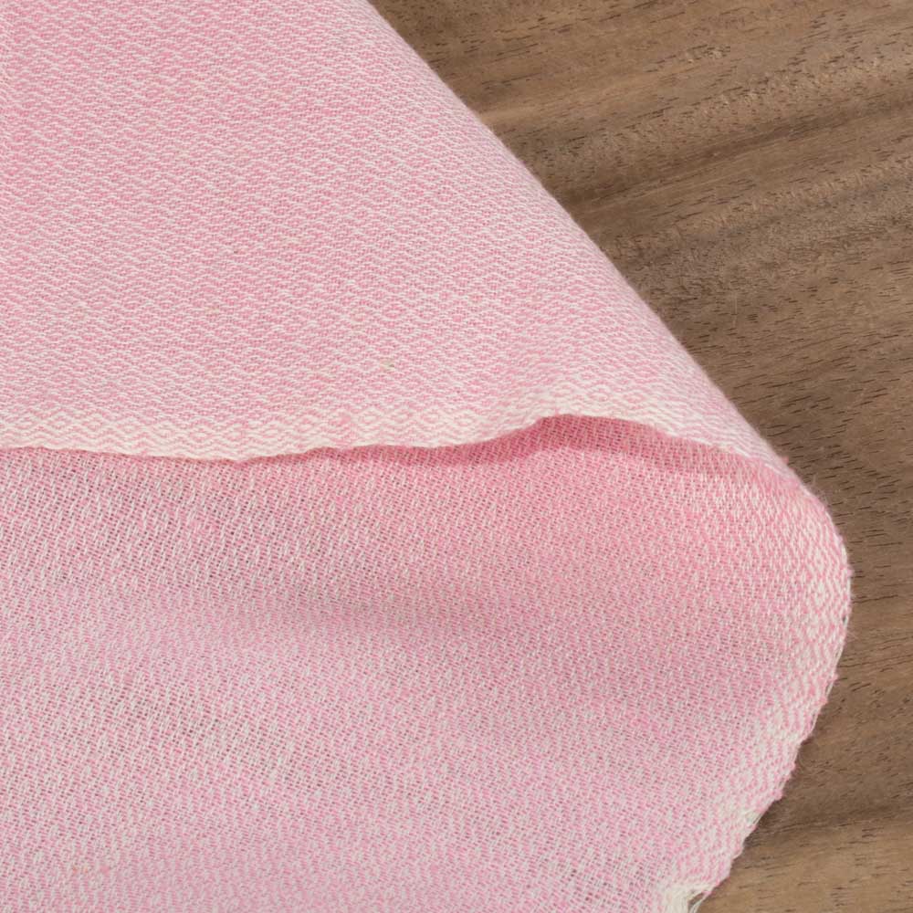 Designed for ethical and sustainable designers, this Jacquard Fabric in pink features a refined diamond twill pattern handwoven with a cotton warp and khadi weft. Weighing 120 GSM, it offers a soft, breathable, and durable finish. Its elegant texture and medium weight make it ideal for versatile end uses—from structured garments to refined home textiles.