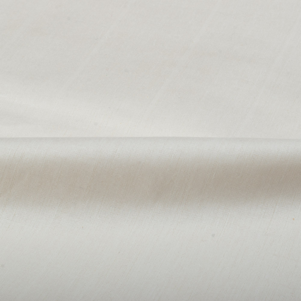 Indulge your creativity with our Plain Natural Matka Silk Cotton Blend 100 GSM Handwoven Fabric—an ethical haven for sustainable designers. Bathed in the timeless allure of Natural White, this fabric blends the purity of raw, ahimsa silk with the comfort of cotton. With Matka Silk in the warp and cotton in the weft, it achieves a harmonious medium-weight texture. Soft, breathable, and durable, its plain pattern serves as a versatile canvas. Envision skirts that sway elegantly, shirts exuding refined simplicity, casual pants embracing comfort, or quilts enveloping in conscious luxury. Elevate your creations with mindful fashion.