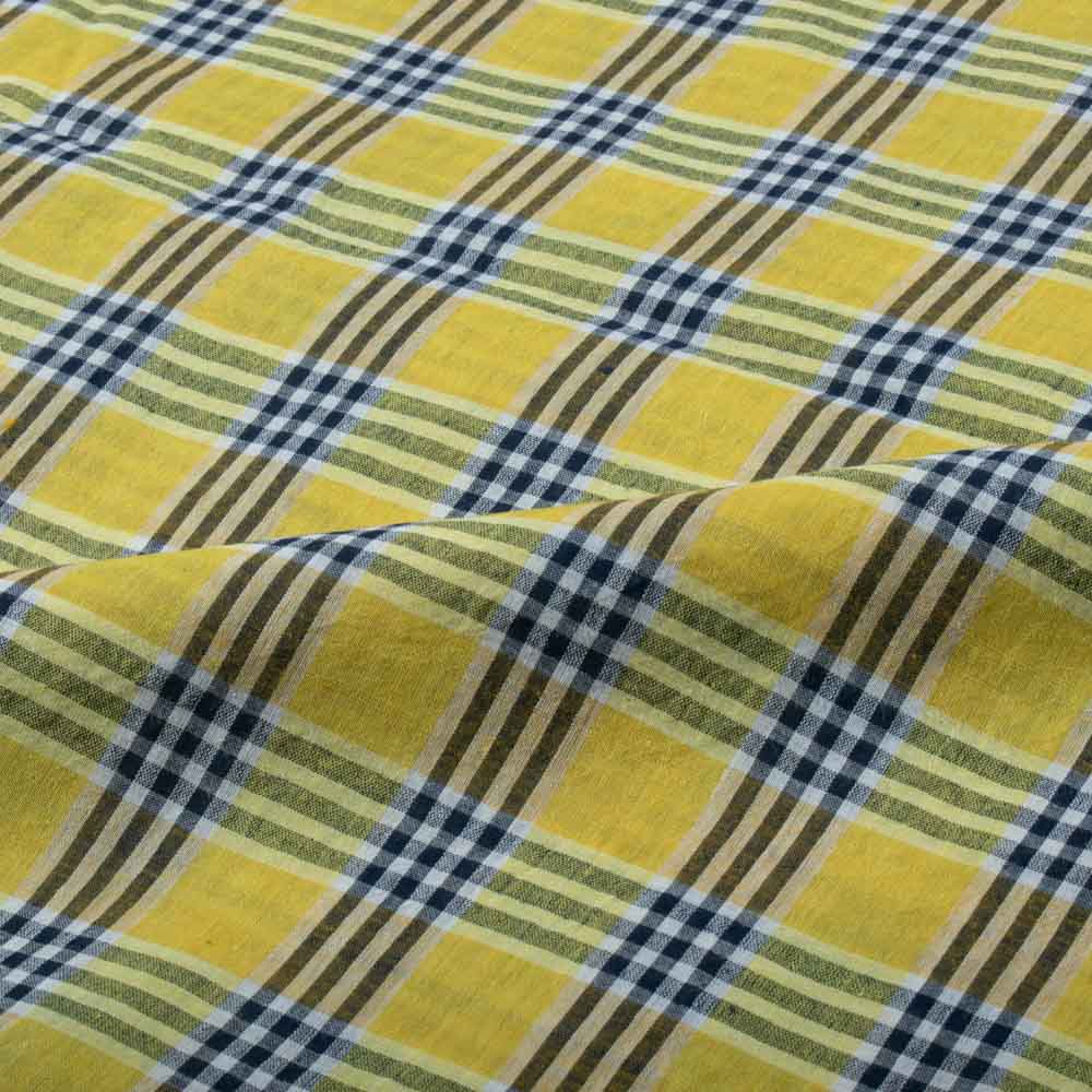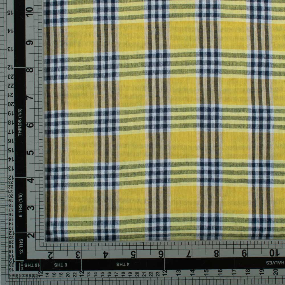 Yellow Base Black & White Check Pure Cotton 70 GSM Handwoven Fabric 759Yellow Base Black & White Check Pure Cotton 70 GSM Handwoven Fabric