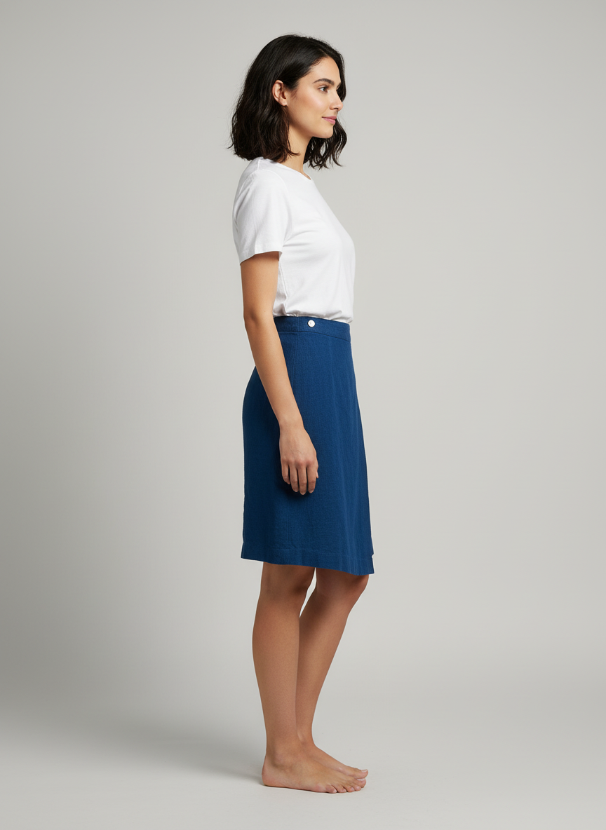 Sophisticated and structured, this Knee Length Pencil Skirt features an asymmetrical cut with a side single button that adds a modern twist to the classic silhouette. Its black base with abstract grey blocks creates a bold yet versatile look, making it a refined choice for both work and evening wear. While distinct from pleated skirts, it offers the same timeless versatility and styling potential.