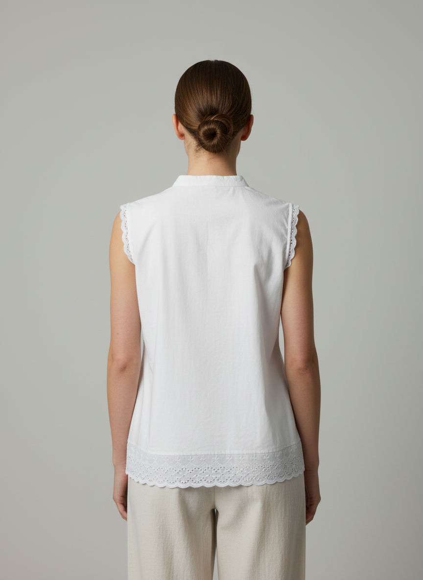 A chic wardrobe essential, this Lace Embellished Pleated Top blends simplicity with refined detail. Designed for effortless styling, it pairs beautifully with trousers, skirts, or casual denim, making it a versatile piece for any occasion. The delicate lace accents and soft pleats add a feminine touch, perfect for both workdays and relaxed evenings.