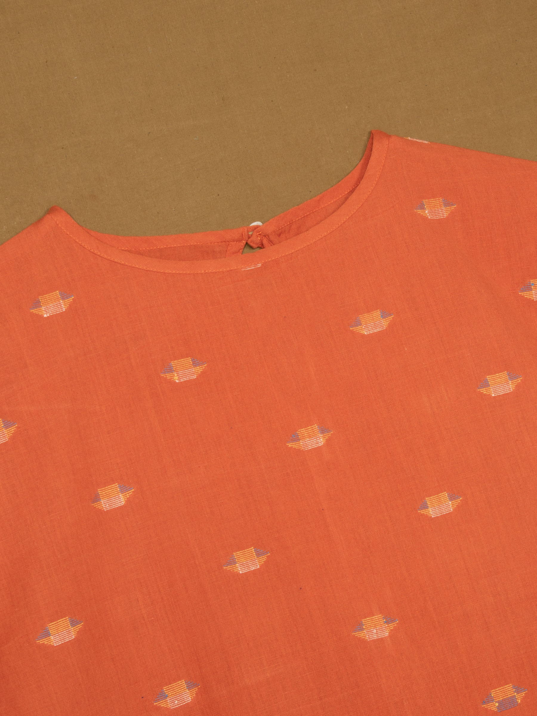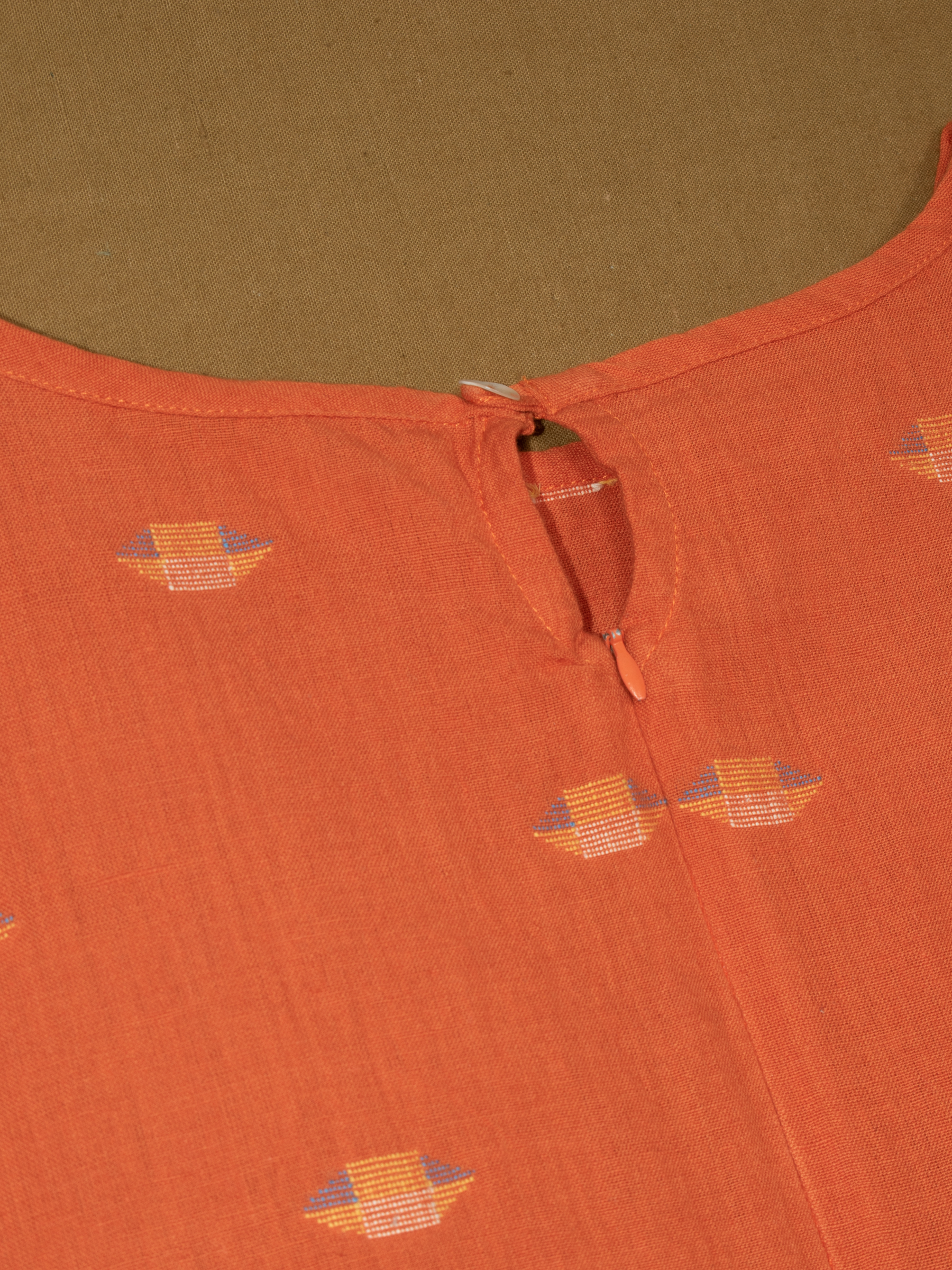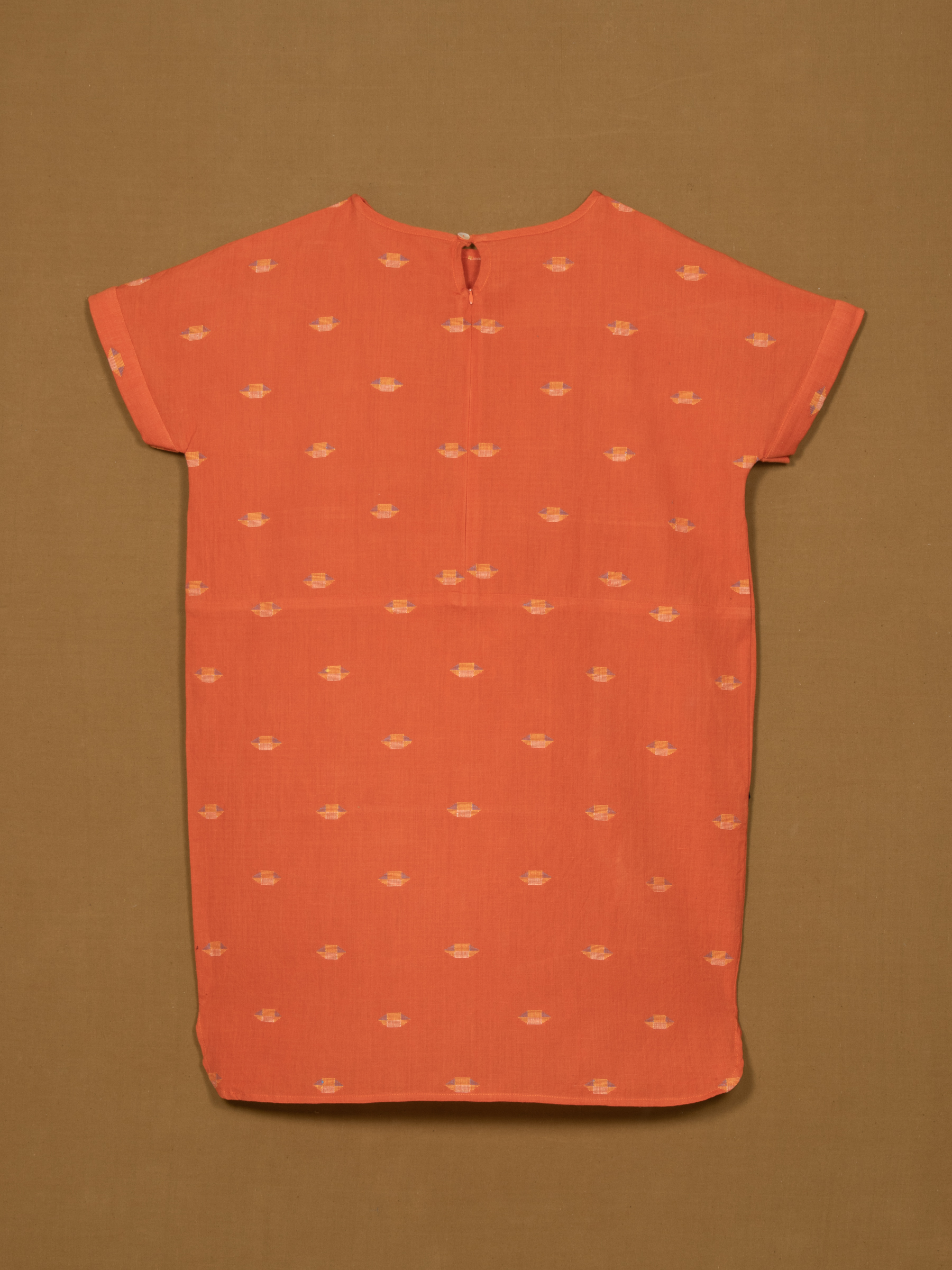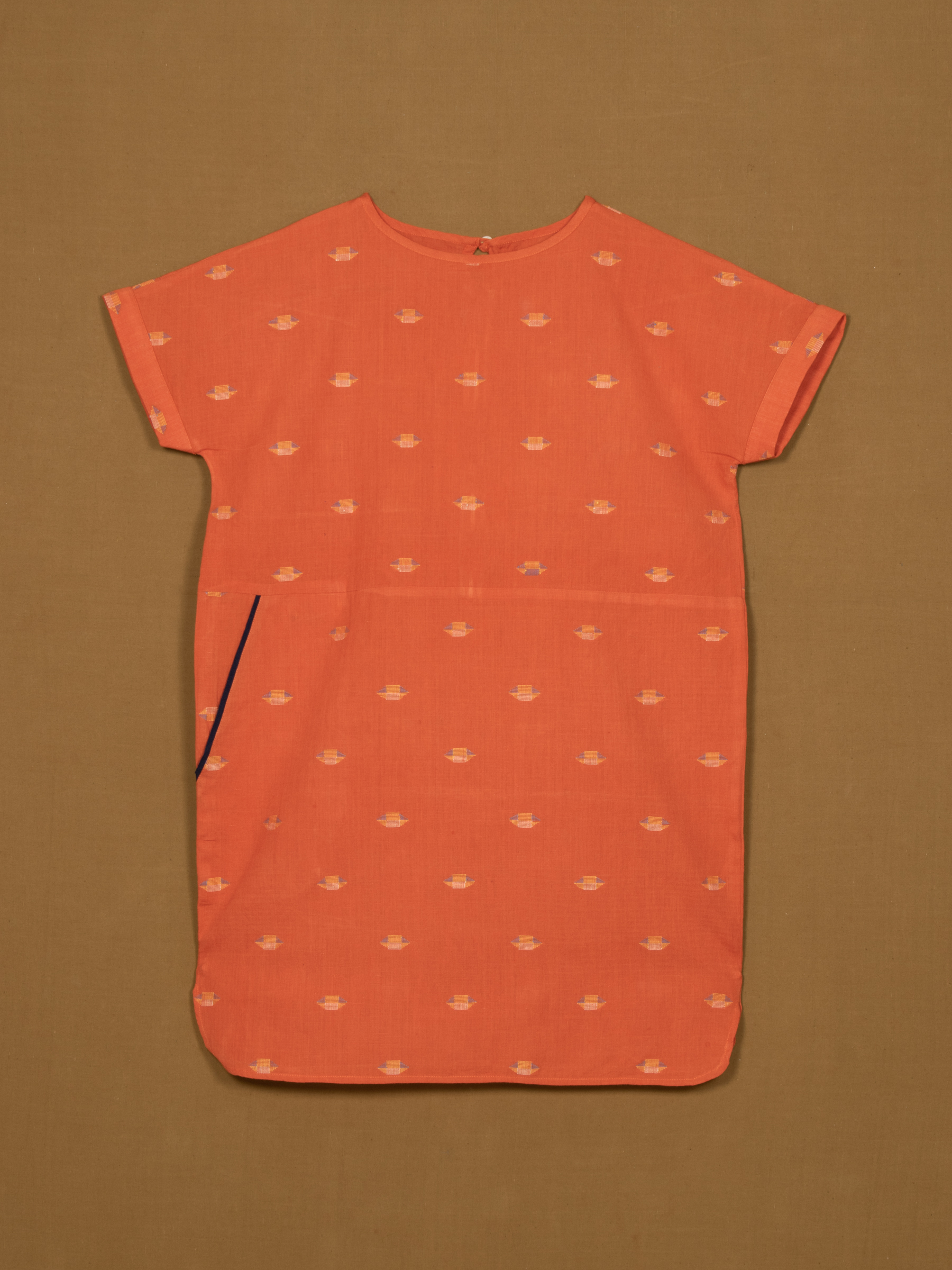 Bright and contemporary, this orange kimono dress combines everyday ease with artisanal charm. Designed with a relaxed silhouette, short sleeves, and a functional side pocket, it blends practicality with style. Crafted from breathable handwoven fabric, it offers comfort, durability, and a pop of color perfect for both casual wear and relaxed gatherings.