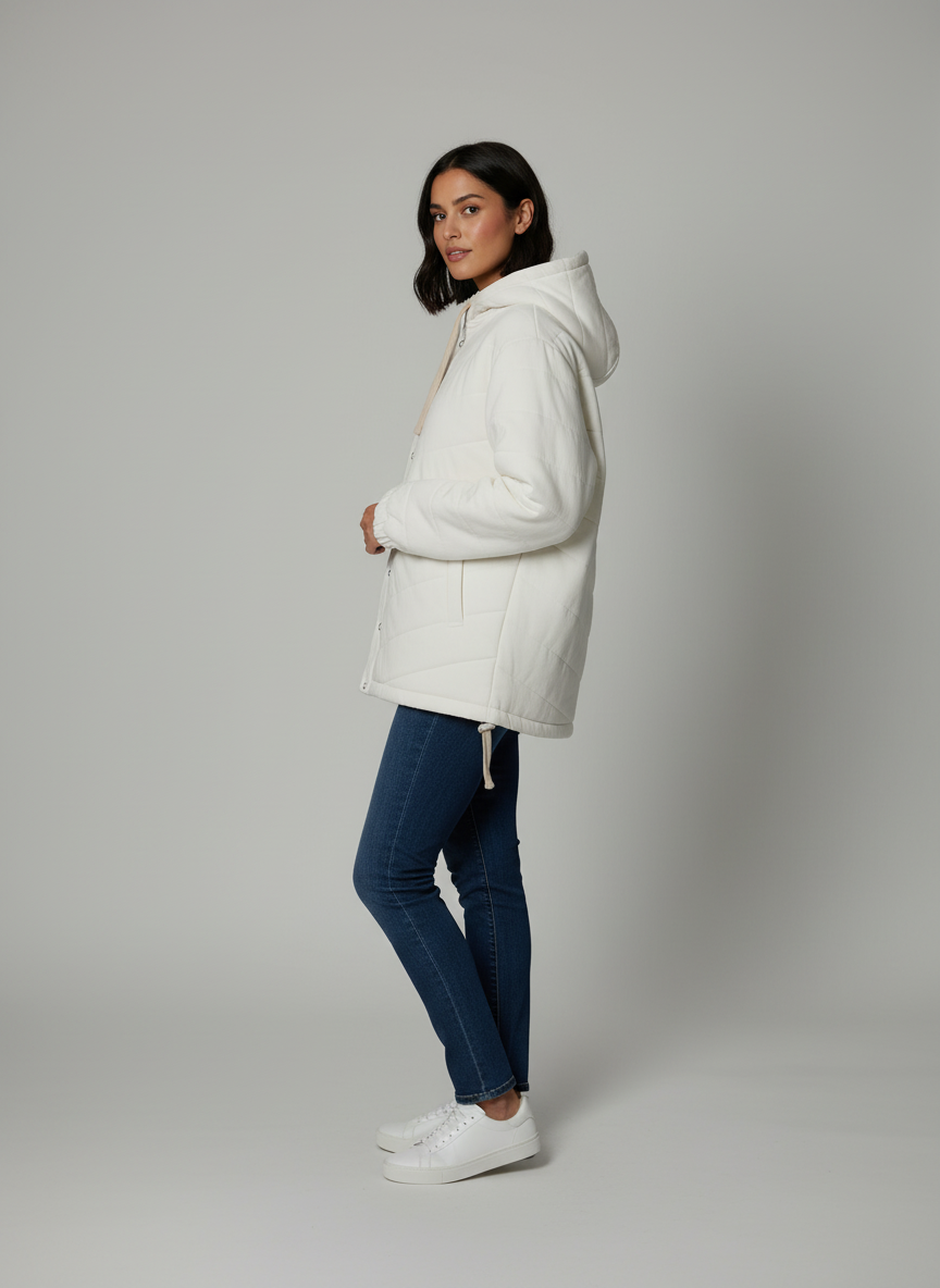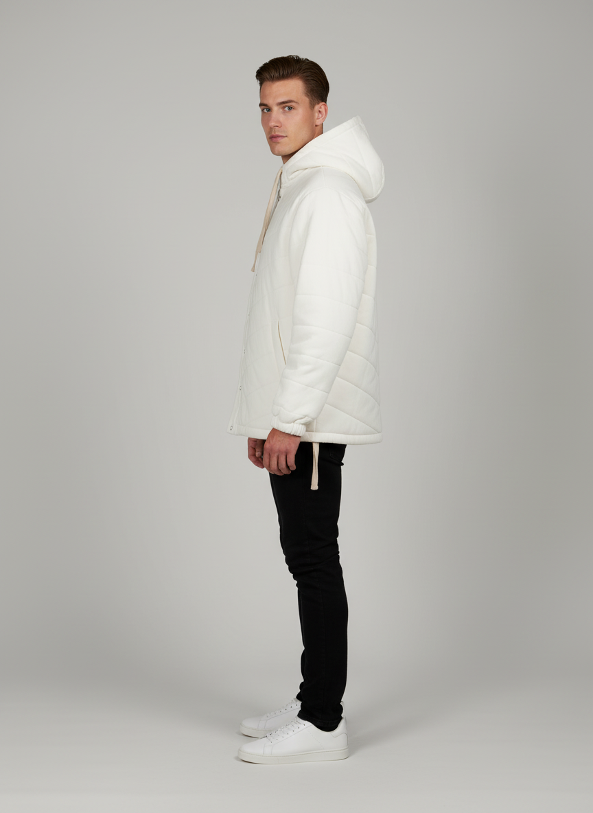 This Puffer Unisex Hoodie brings together warmth, comfort, and timeless design. Handstitched with a textured finish, it is crafted from soft, breathable, and durable fabric, offering the cozy feel of a cotton hoodie with added insulation for colder days. Featuring a turtleneck, zip closure, and functional pockets, it’s perfect for both casual and winter wear. Fully customizable in fabric and design, this versatile hoodie suits ethical brands seeking to blend functionality with sustainable fashion.