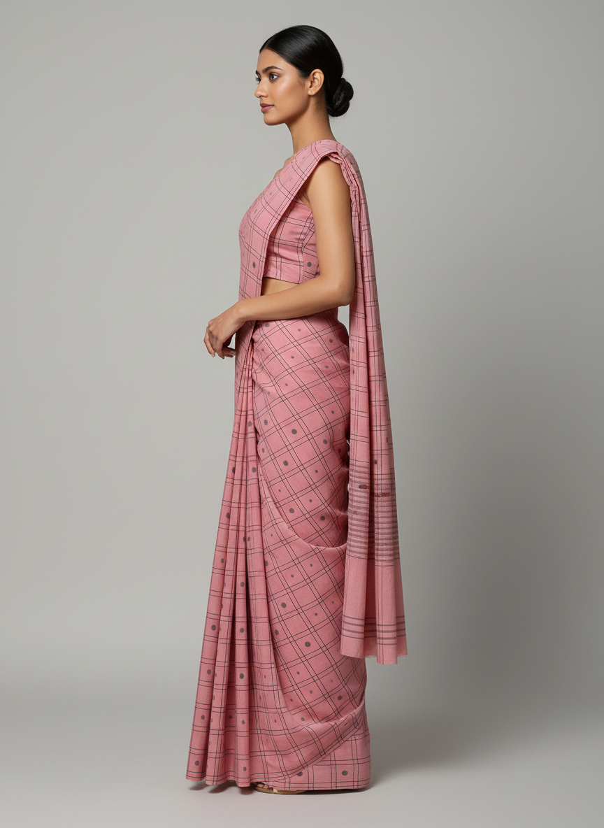 Classic yet contemporary, this women's saree in a vibrant coral-red shade with subtle checkered motifs embodies timeless grace. Its lightweight drape ensures comfort, while the intricate weave brings out understated elegance. Perfect for festive occasions, gatherings, or formal events, it blends tradition with modern charm.