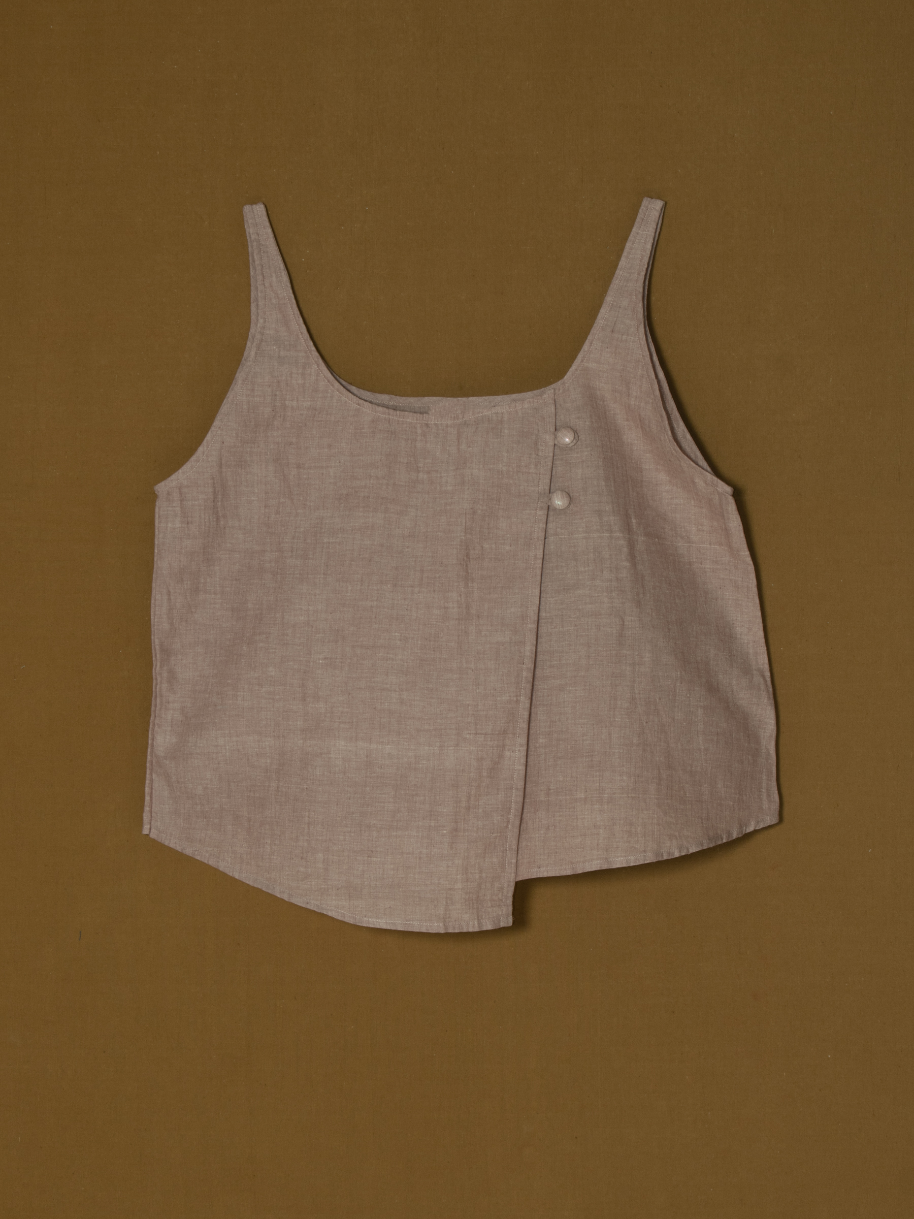Minimal yet striking, this Sleeveless Asymmetric Top channels the effortless elegance often seen in women’s dresses. Its earthy brown tone and clean square neckline create a modern aesthetic, while the asymmetric cut adds subtle flair. Lightweight and breathable, it transitions easily from casual wear to chic layering.