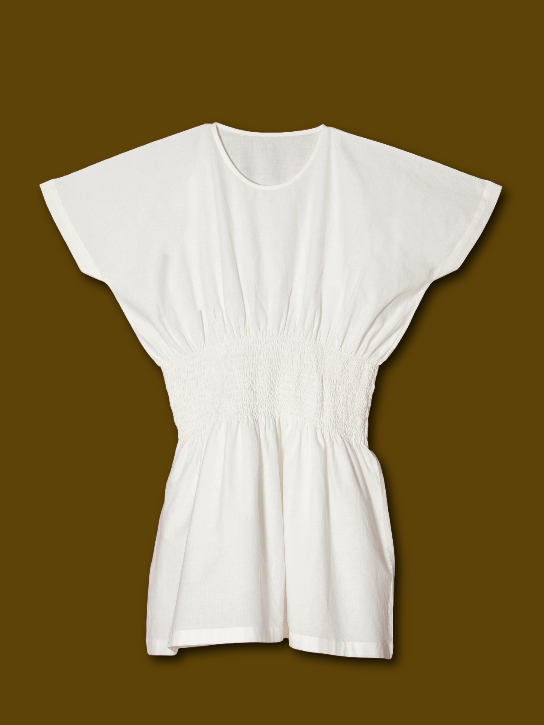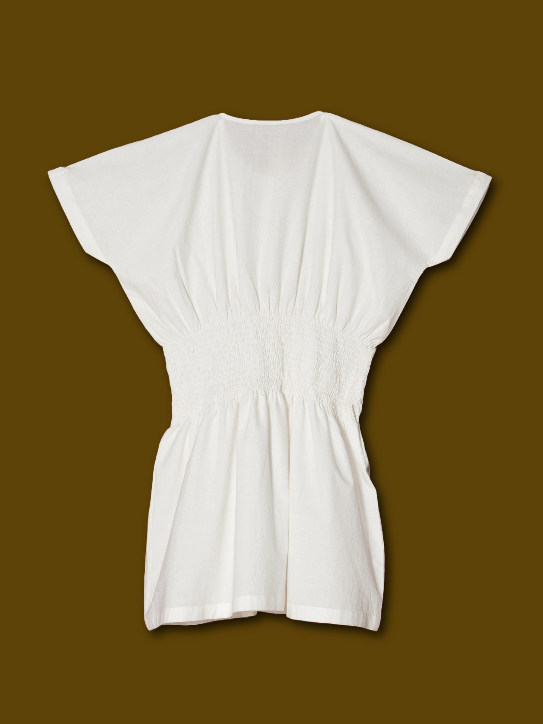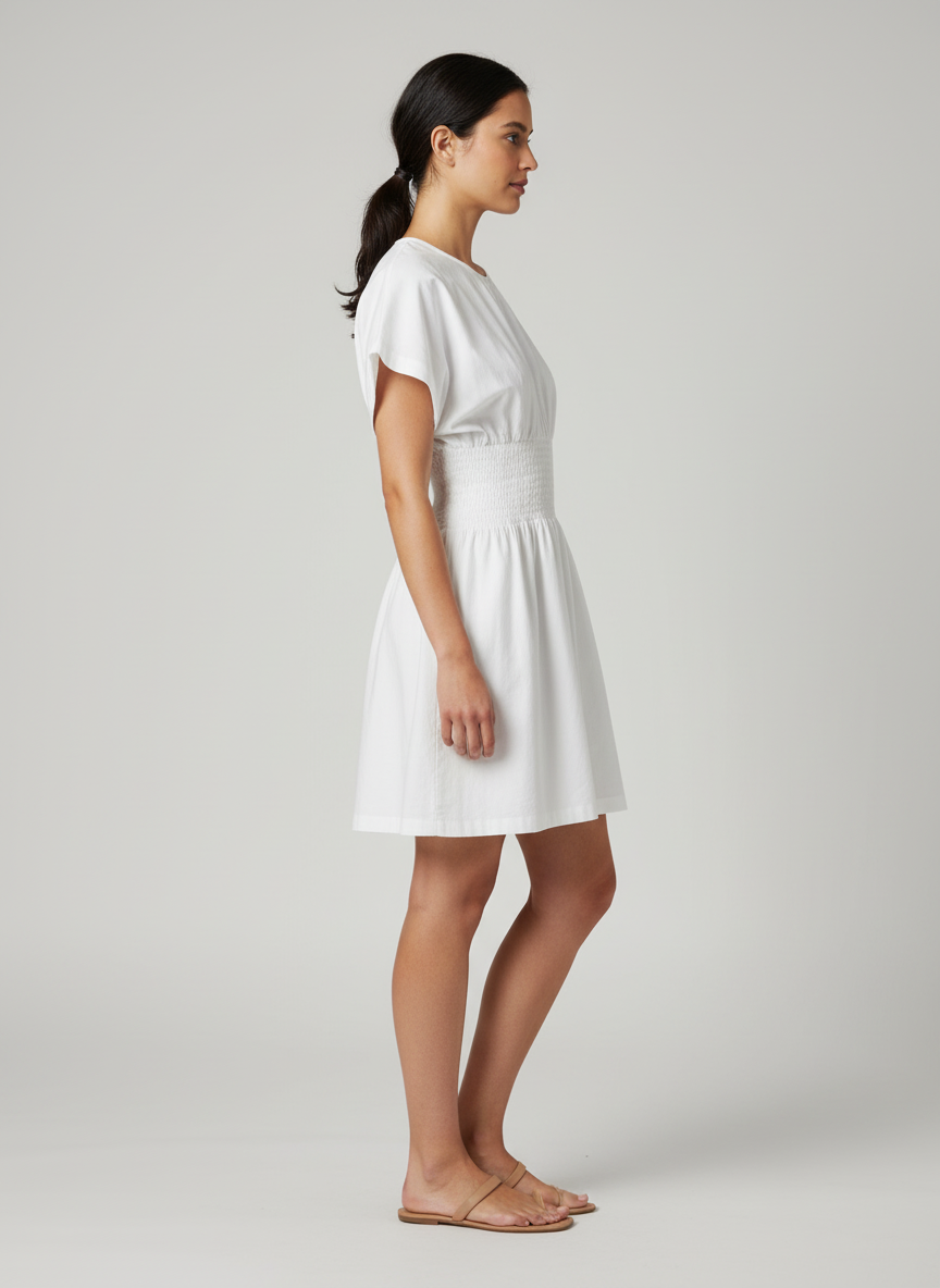 Effortlessly chic, this Smocking Dress with Kimono Sleeves adds a modern twist to women’s dresses. Its crisp white tone, smocked waist, and flowy mini length create a flattering silhouette, while the wide kimono sleeves add relaxed elegance. Perfect for casual outings, brunches, or summer gatherings.