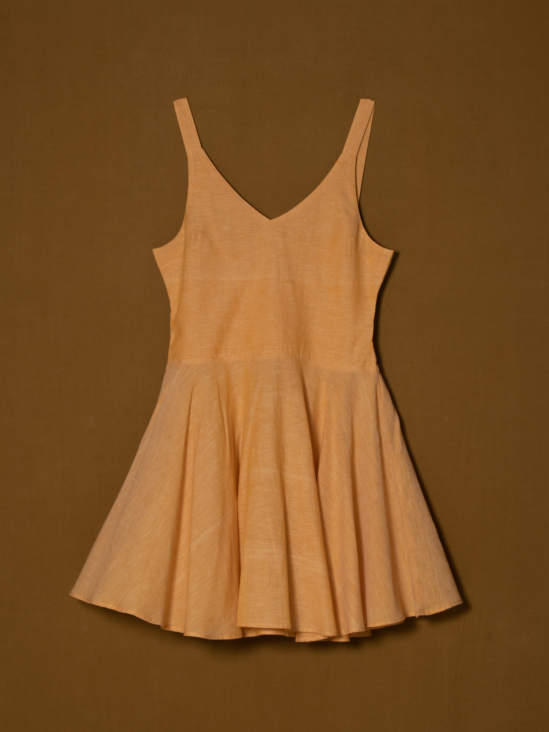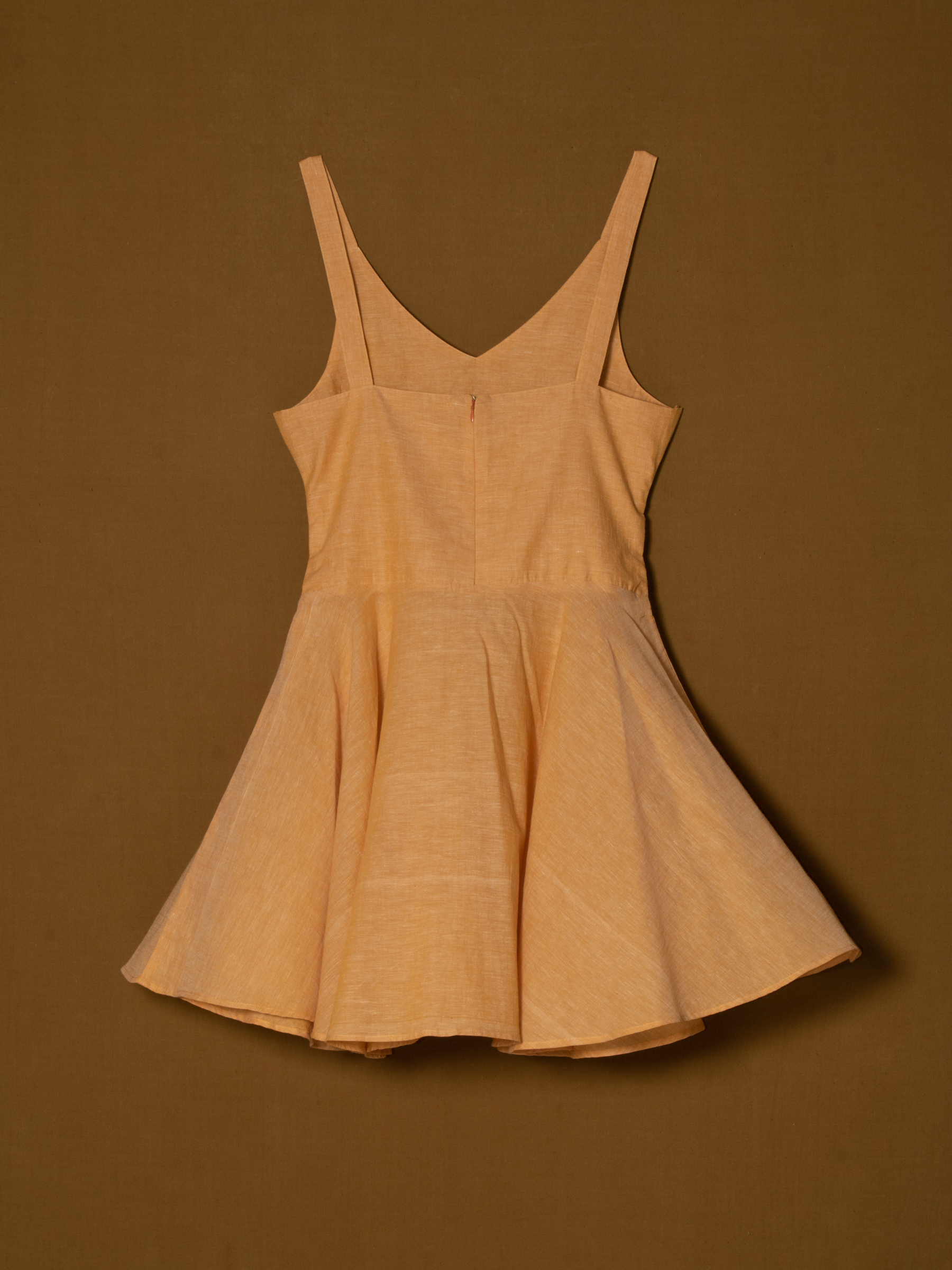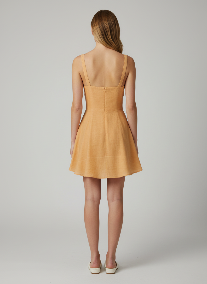 Playful and breezy, this Strappy Fit and Flare Mini Dress is a must-have in women’s summer dress collections. Designed in a warm peach tone with slim straps and a flared hem, it offers a flattering silhouette that moves effortlessly. Lightweight and breathable, it’s perfect for casual outings, vacations, or daytime gatherings.