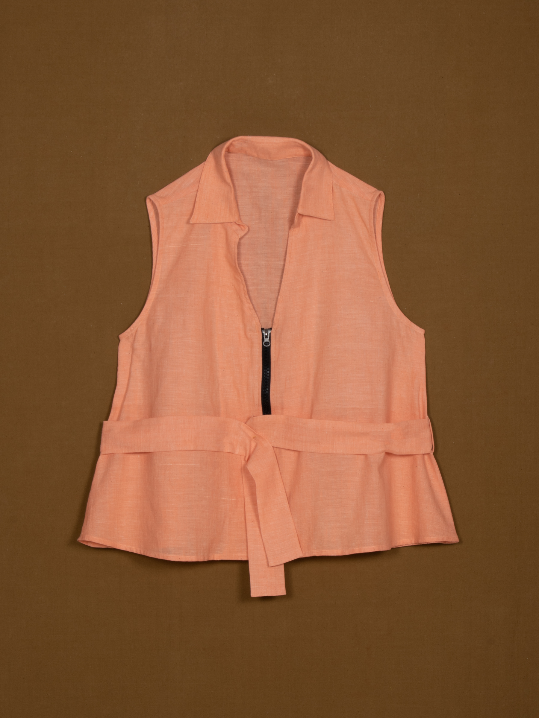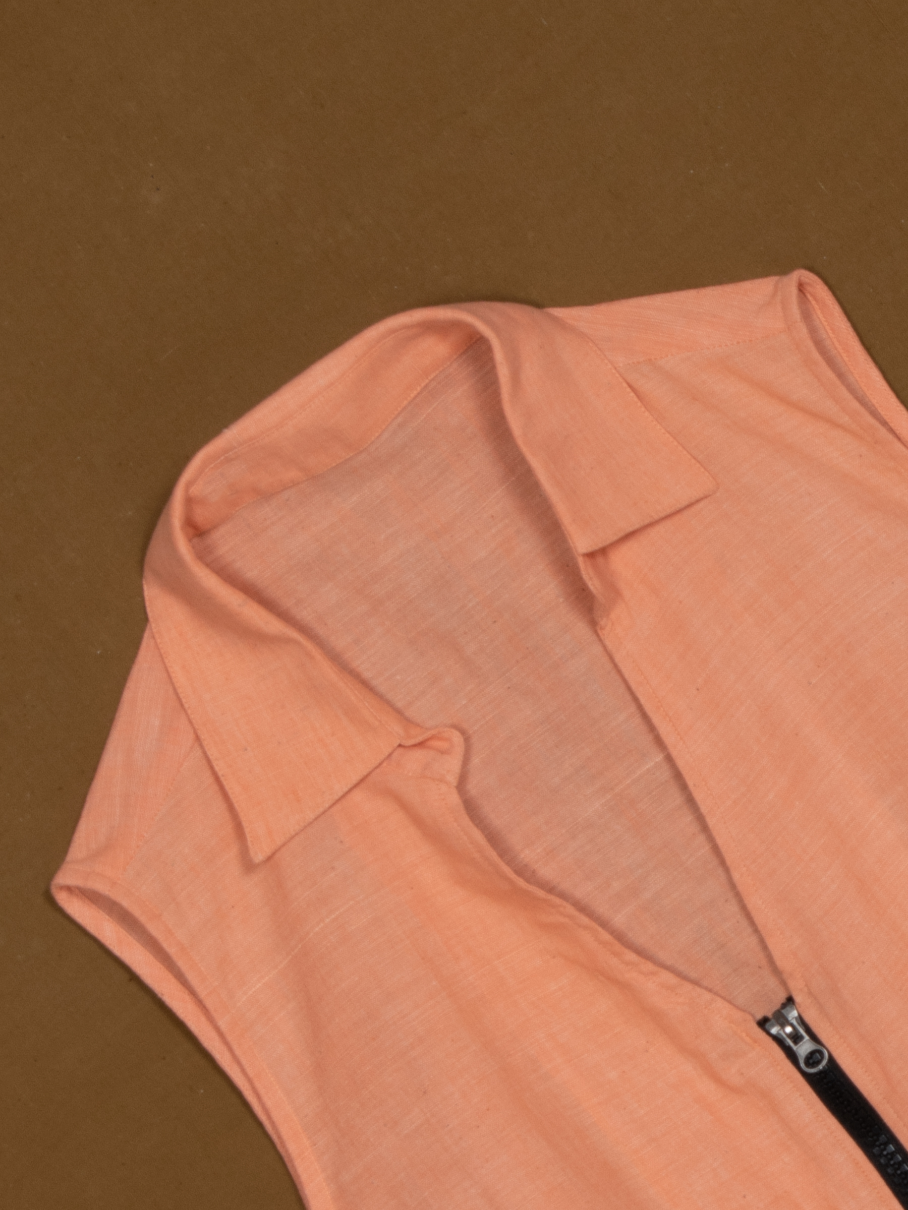 Bold and contemporary, this Wide Open Free Style Polo Collared Top redefines the modern women’s top. Its peach-orange tone pairs with a sleek front zipper for an edgy twist, while the collared neckline and waist tie balance structure with style. Lightweight and breathable, it’s perfect for layering or wearing as a statement piece.